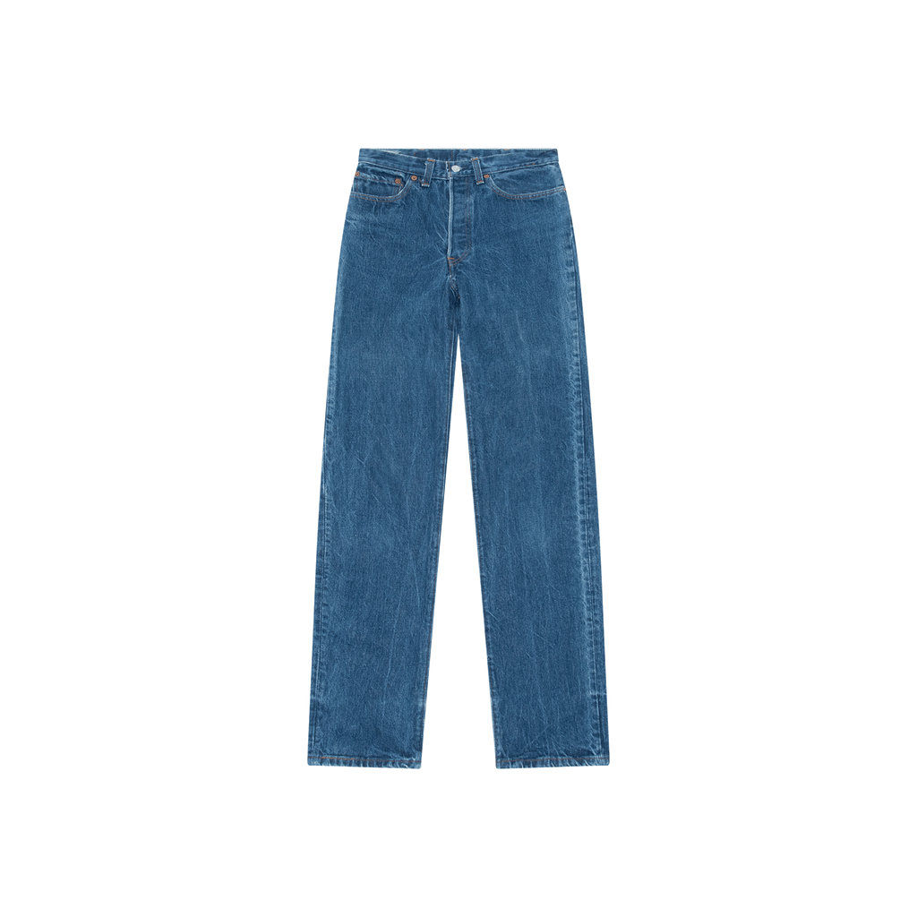 Vintage Levi's Blue 501 features straight leg, front button closure, and 5 pocket styling.