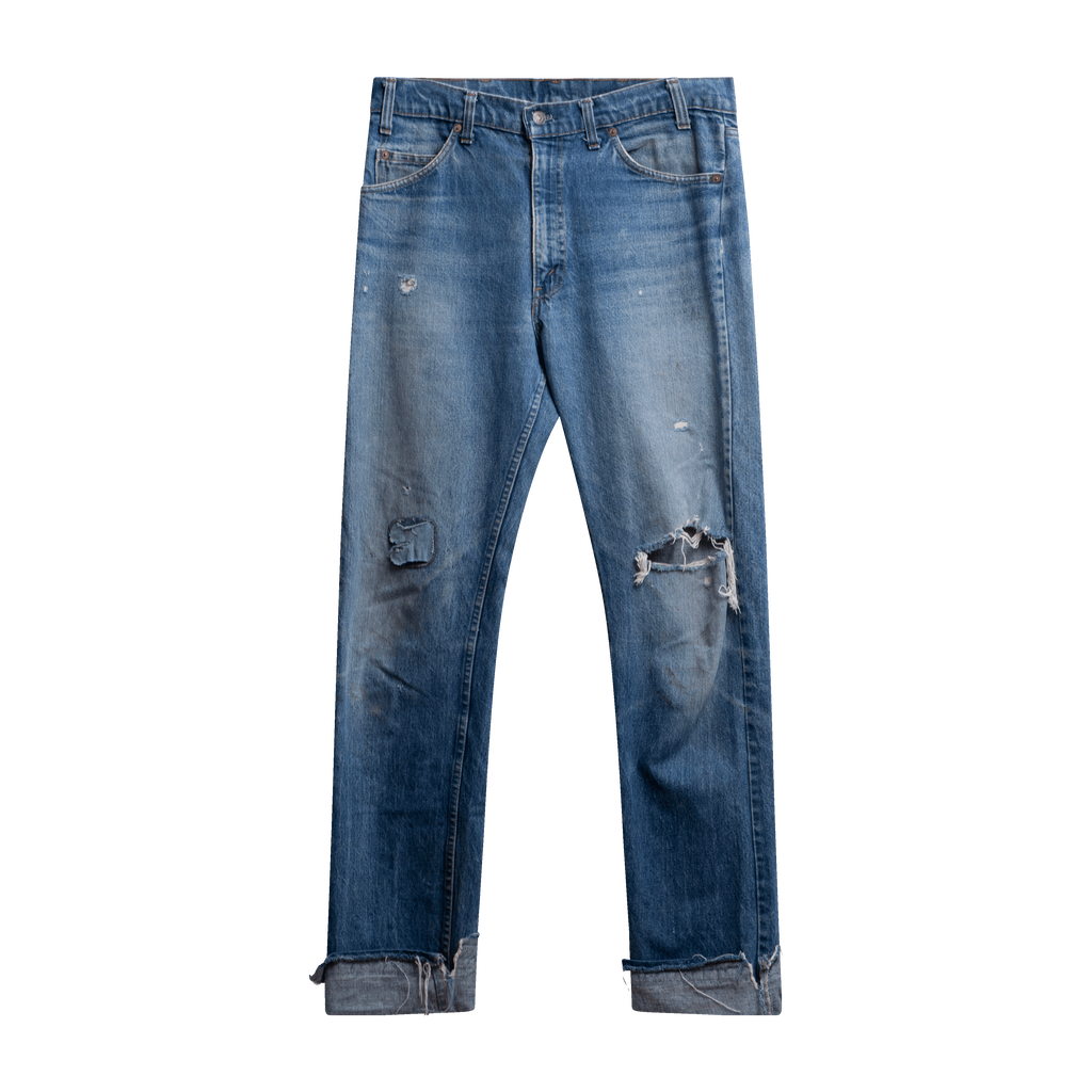 Vintage Levi’s Orange Tab Jeans features 5-pocket styling, zip fly and button closure, natural distressing.
