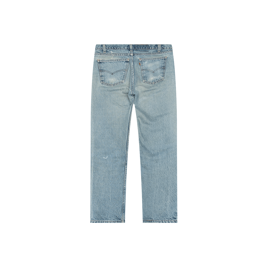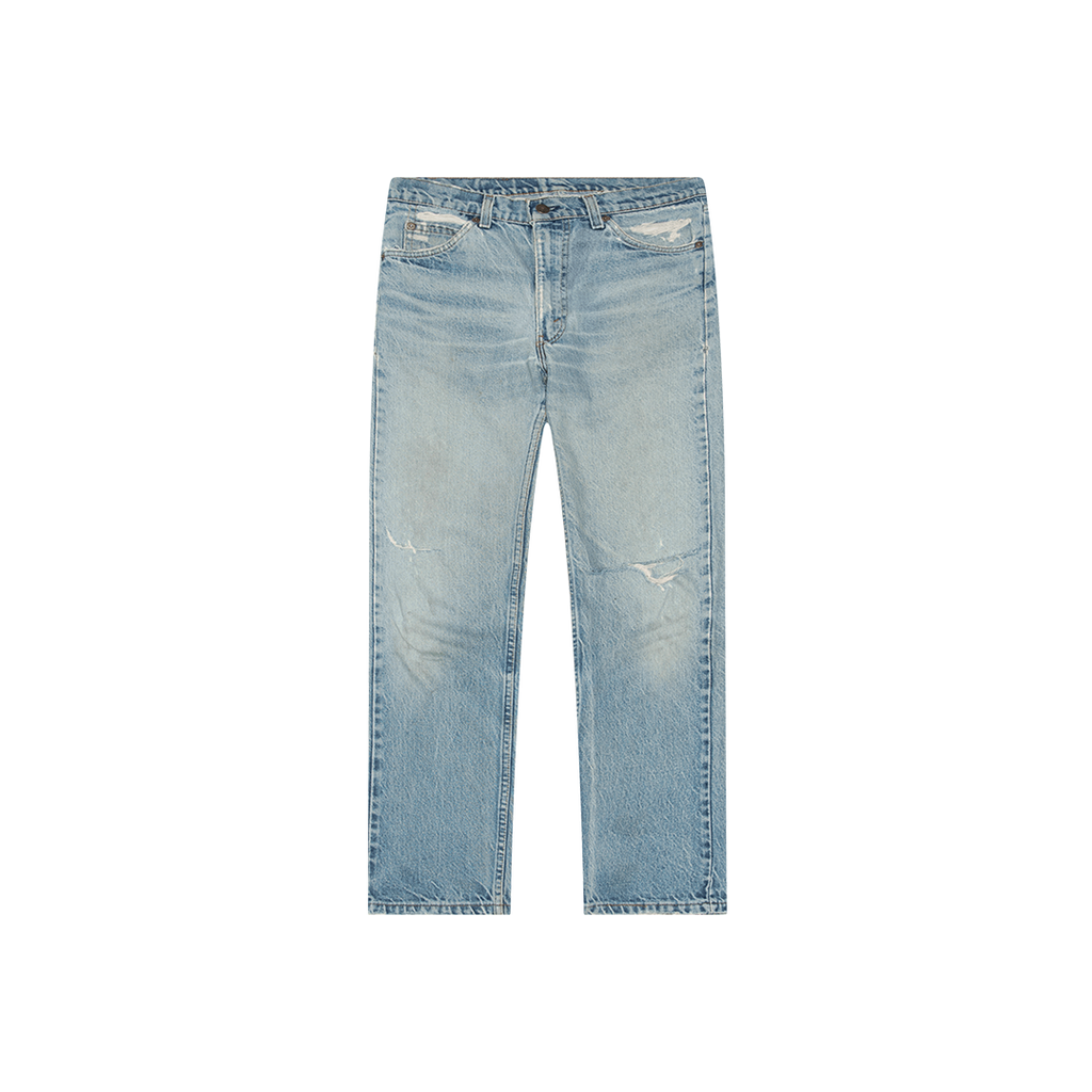 Vintage Levi's Orange Tab Jeans features front button closure, 5 pockets, slit knees, and distressed design.