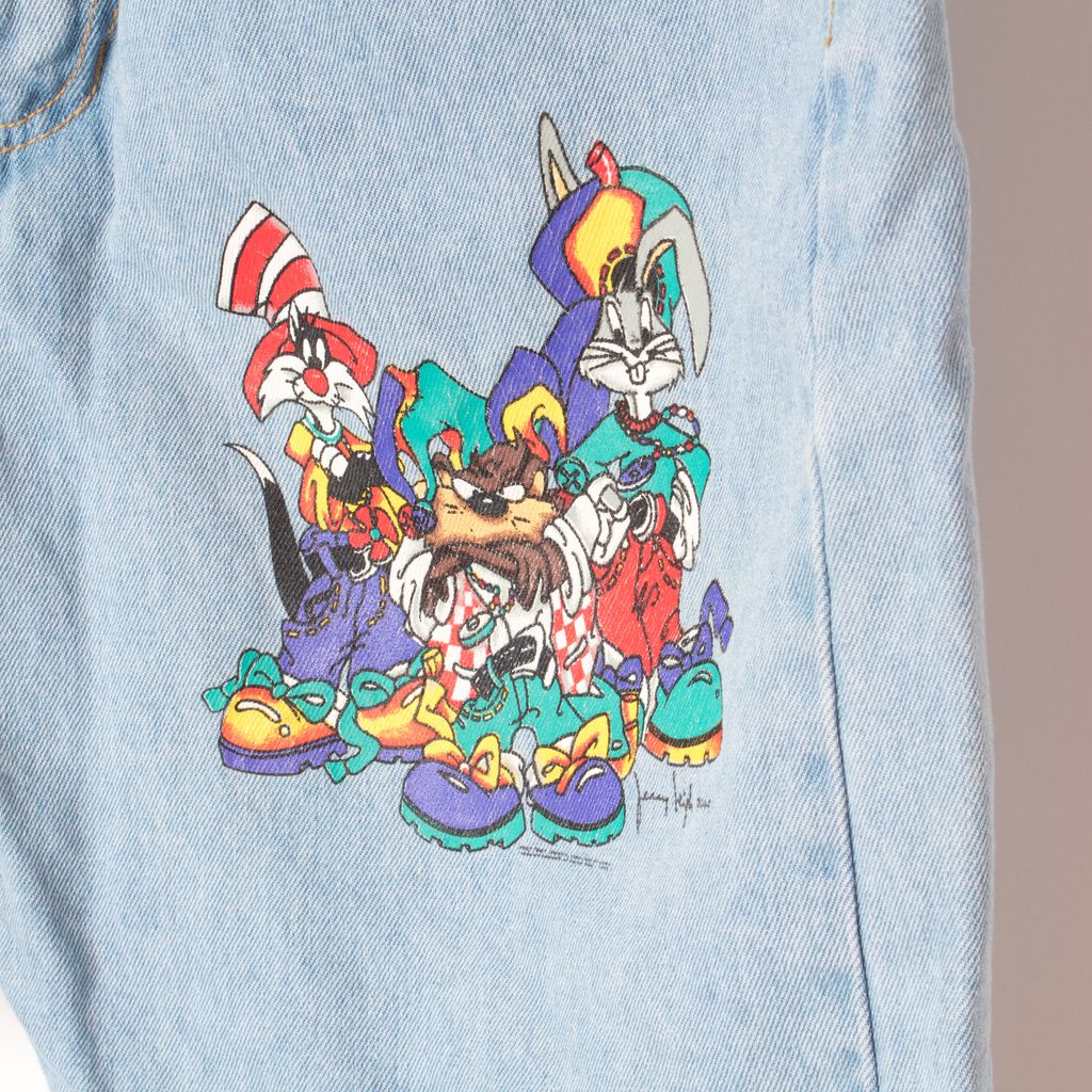 Like new vintage Loony Tunes jean short by Jerry Leigh. Light denim wash with screen printed graphic, in excellent condition for age.