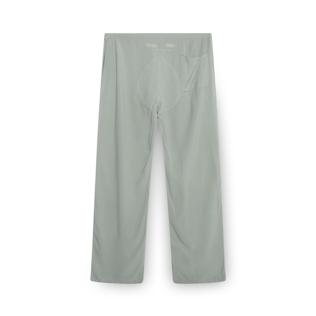 Vintage MM6 flowy light weight pants features straight leg, two pockets at hip, and drawstring at waistband.