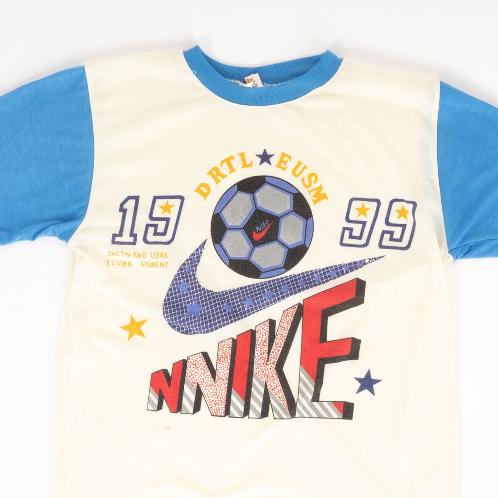 90's branding and design are front and center in this baby tee from Nike. Toned down color scheme and fading enforce the vintage vibe, while soft hand and relaxed body increase wearability.
