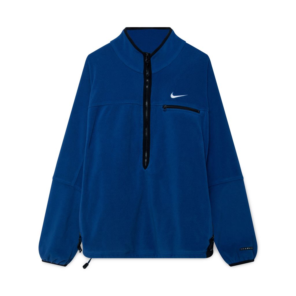 Vintage Nike ACG Small Logo Half Zipper Fleece Sweatshirt features black side panels, drawstring waist, zipper on left chest, and logo embroidery on right sleeve and left chest.