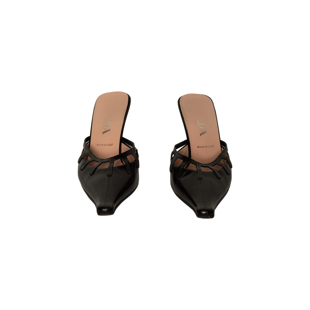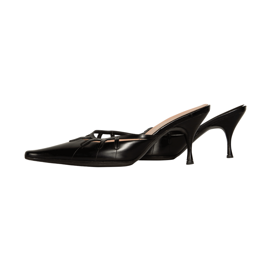 Vintage Prada mules with lattice detail. Very now, very comfortable.