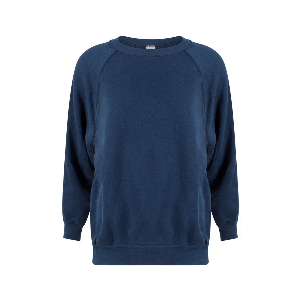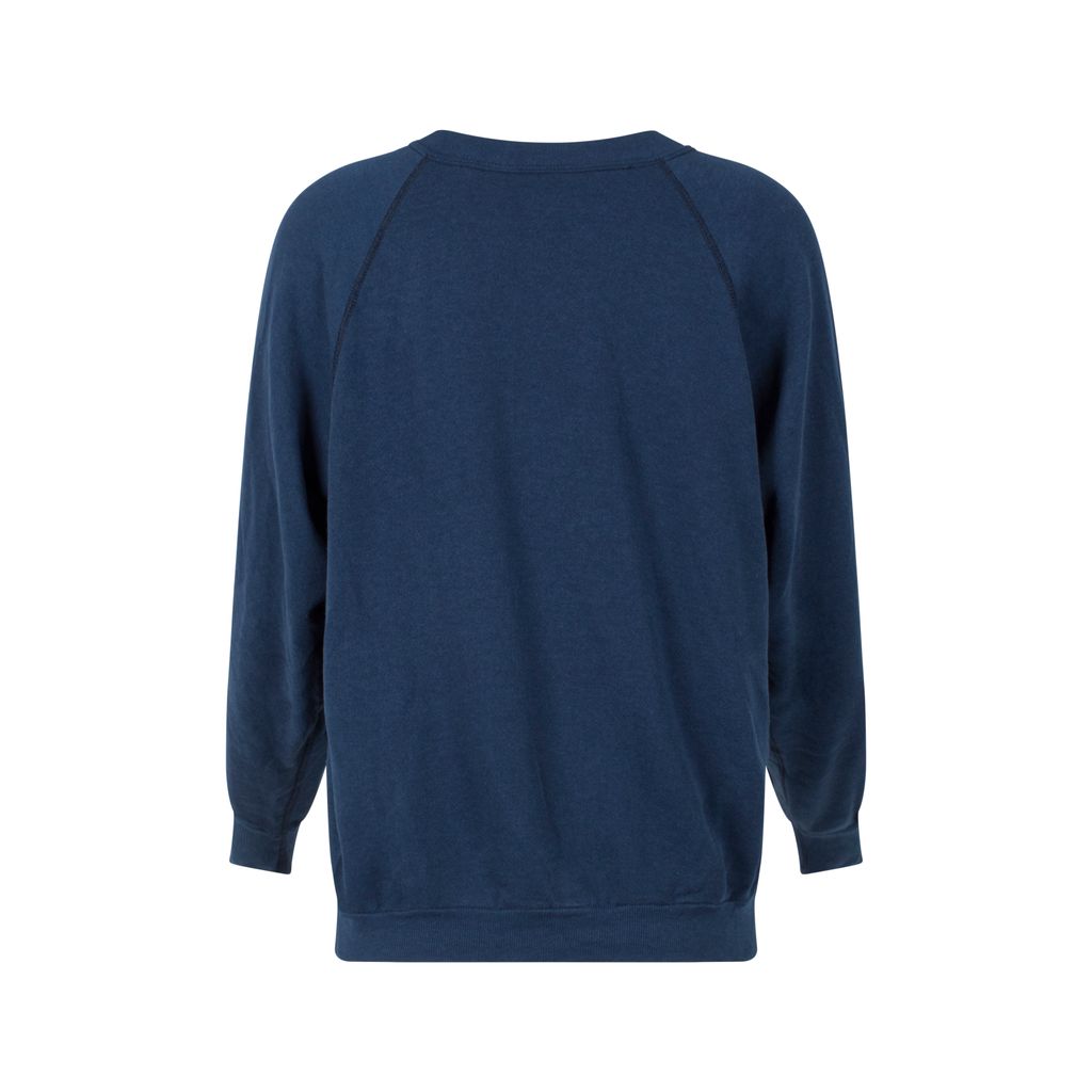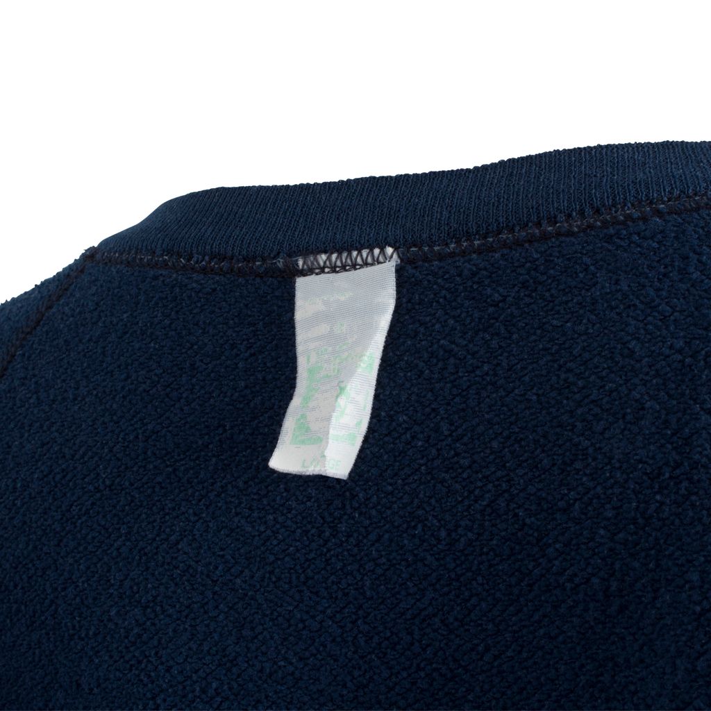 This vintage pullover features raglan long sleeves, wide crew neckline, and a ribbed hemline. Great for working out or lounging on weekends. Gently worn.
