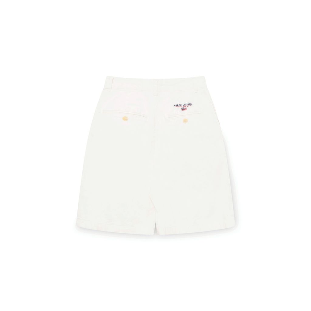 Vintage Ralph Lauren White Shorts features front pleat and logo on right rear