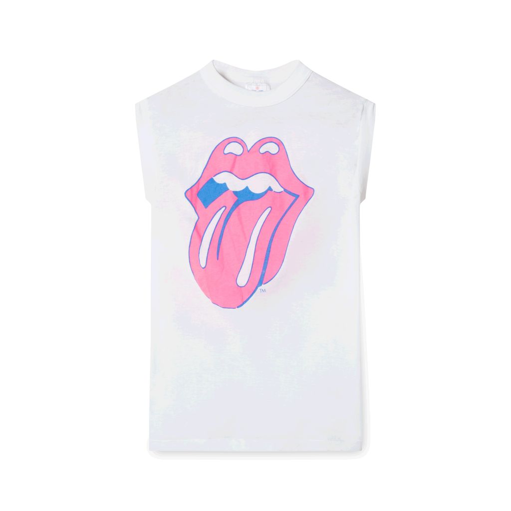 Rolling Stones white t-shirt features pink lips and short sleeves.