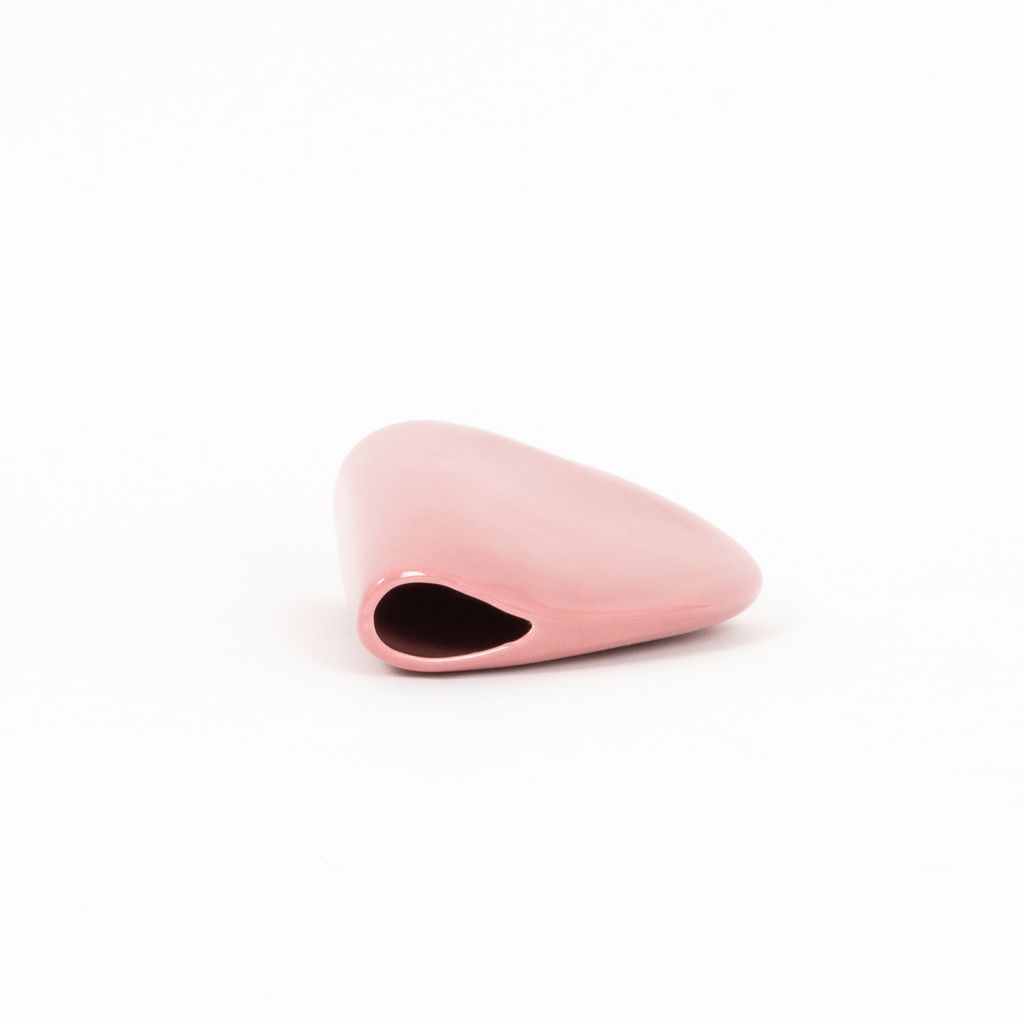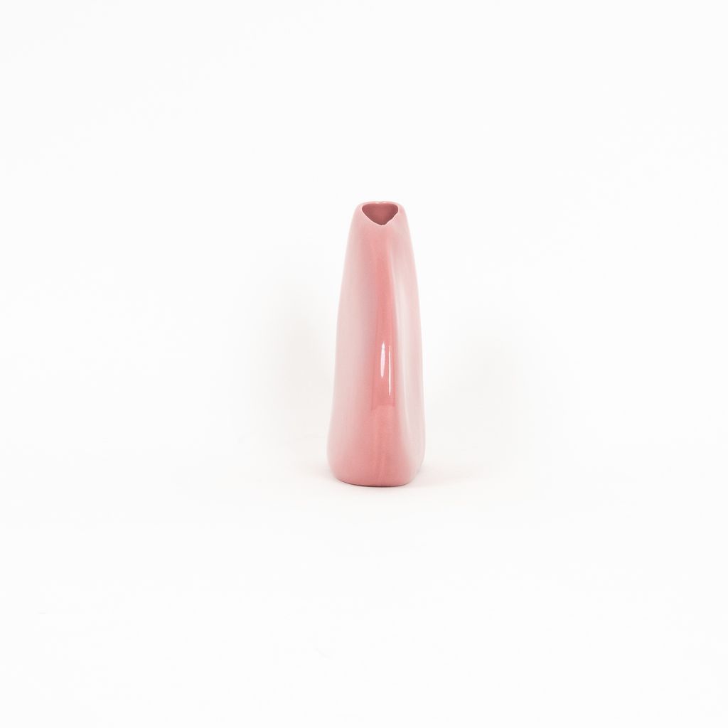Portable sculpture meets functionality in the form of this sharkfin shaped, curved body vase. Small feet on bottom allow for stability, while the open body and small top can feature a cluster of flowers.