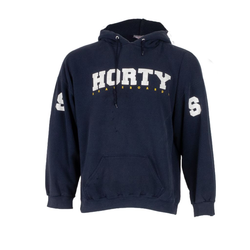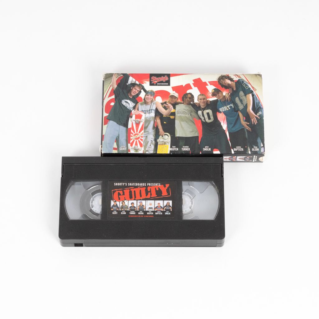 Old school skate brand Shorty's gets some new and repurposed life with this bundle of their hoodie and early 2000's VHS tape Guilty. Features full hood with pull tabs, small kangaroo pocket, Shorty's Skateboards chest graphic with matching S letters printed on sleeves, and signs of wear. Signs of wear include scuffing on graphic, holes on sweater, and allover color fading.