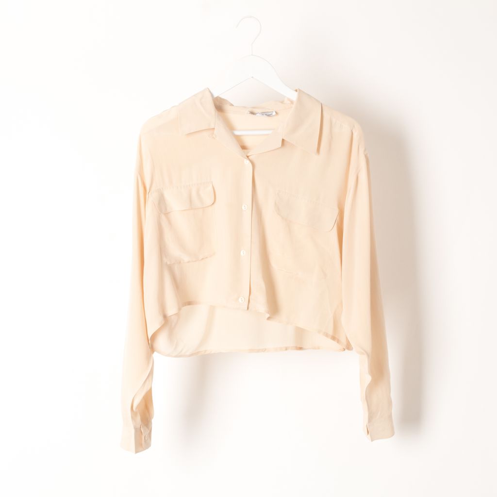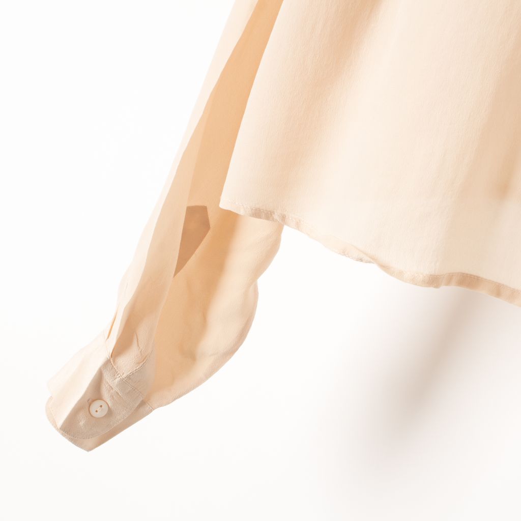 Vintage silk blouse from Anna and Frank. 100% silk, flowing fabric motif throughout, button up front, collared finish, elongated sleeves featuring button closure.