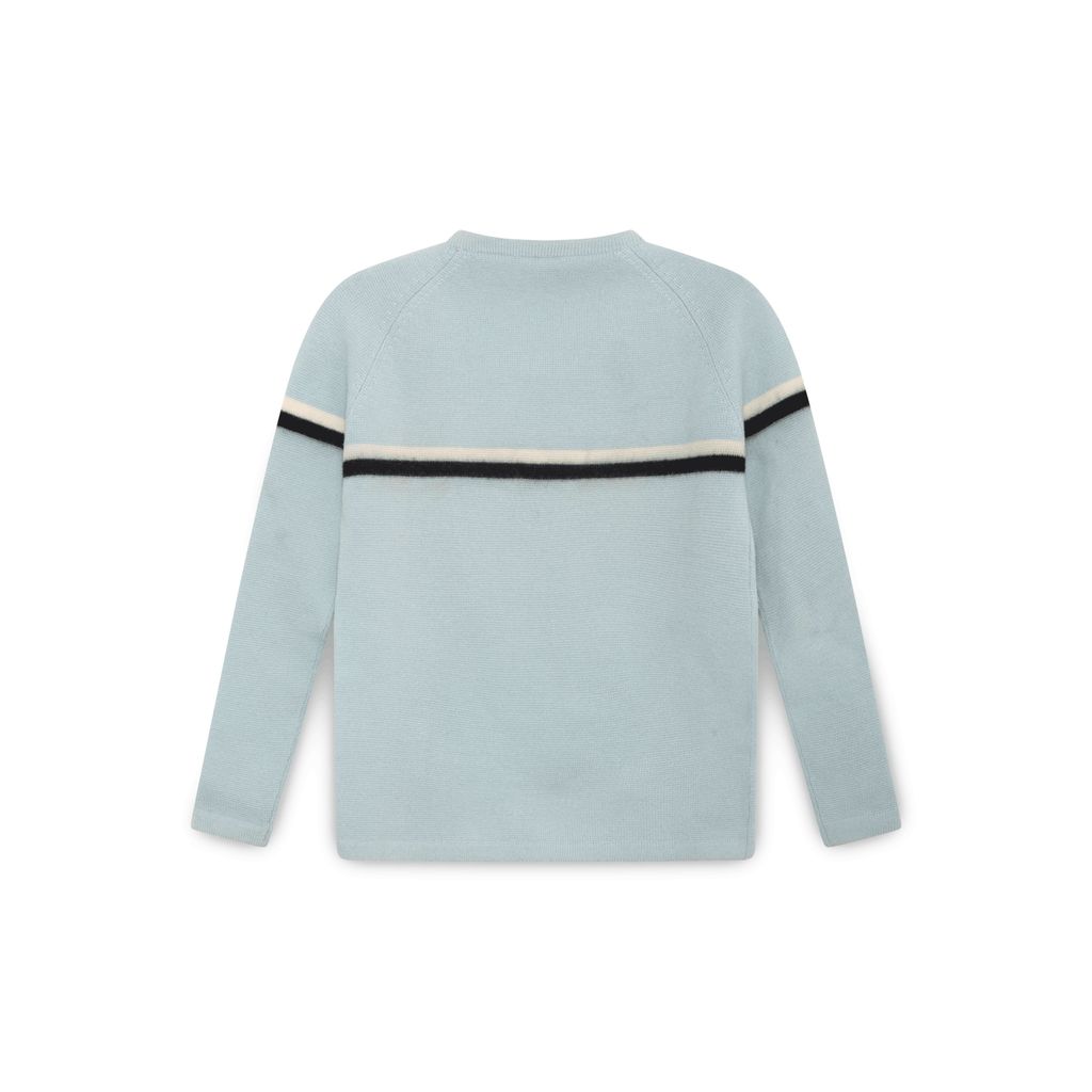 Vintage Striped Wool Sweater features ribbing at collar, hem, and cuffs.