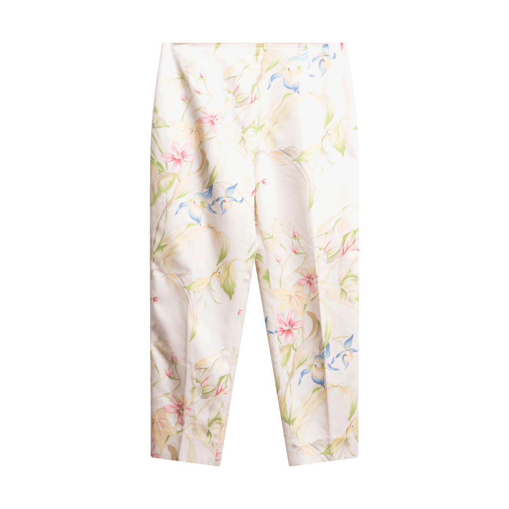 Vintage Talbots Silk Pants features painted florals, side zip closure, petite fit.