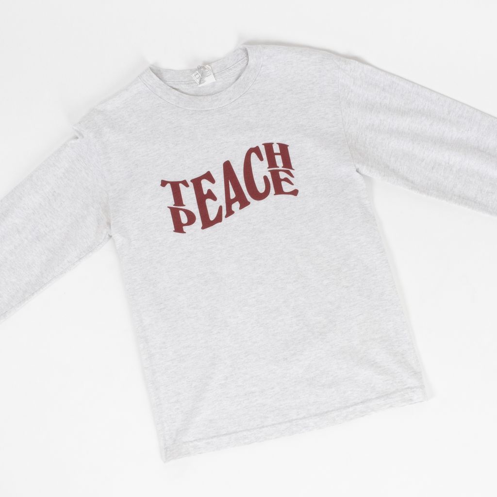 This vintage long sleeve gives off all the feel good vibes with its "Teach Peace" chest graphic. Features relaxed fit, rib knit bands at wrists and neck, and "Teach Peace" graphic on chest.