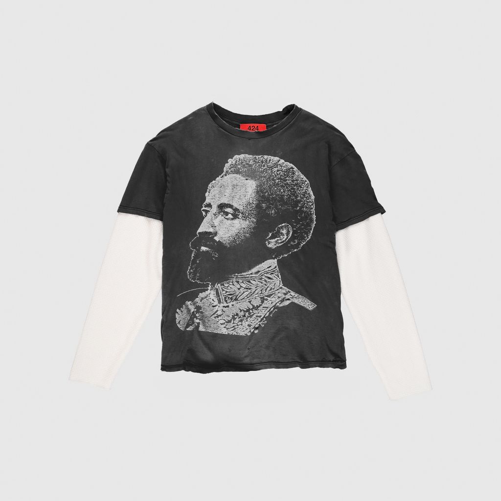 424 Vintage Tee with Thermal Sleeves features vintage tee, heavy distressing, and light print graphic.