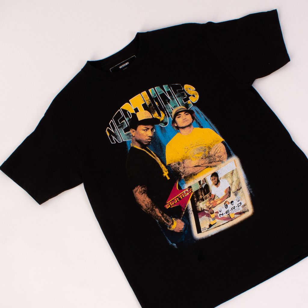 This shirt is a sick celebration of an early project from production duo Chad Hugo and Pharrell Williams, also known as the Neptunes. Features unique front and back screen printing as well as soft body construction.