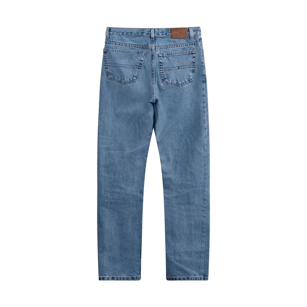 Light Wash Tommy Hilfiger jeans, featuring company logo on back right pocket.