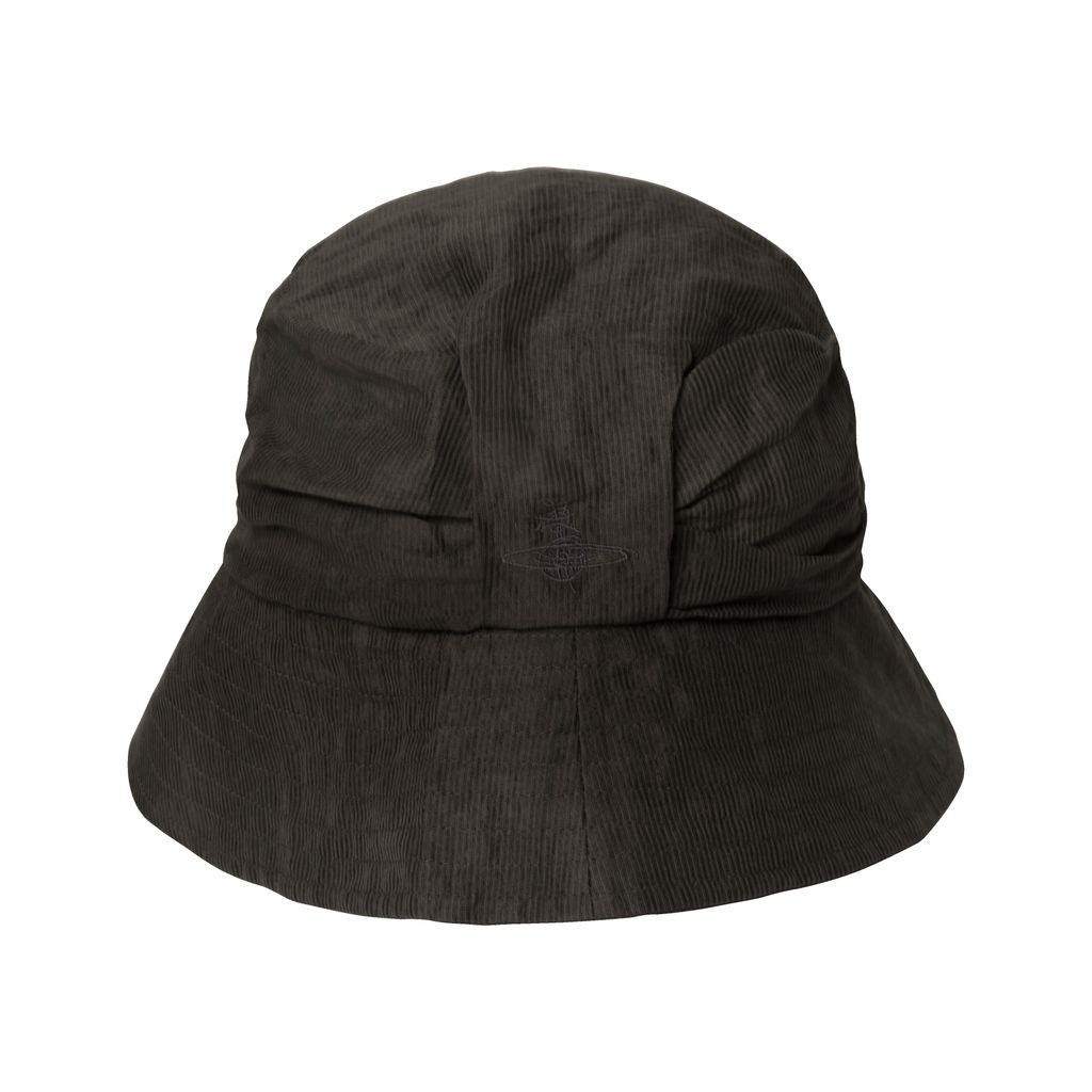 Vivienne Westwood bucket hat features olive green exterior and black mesh lining.