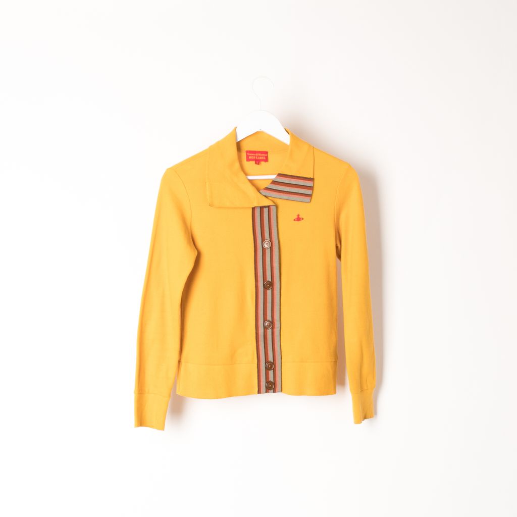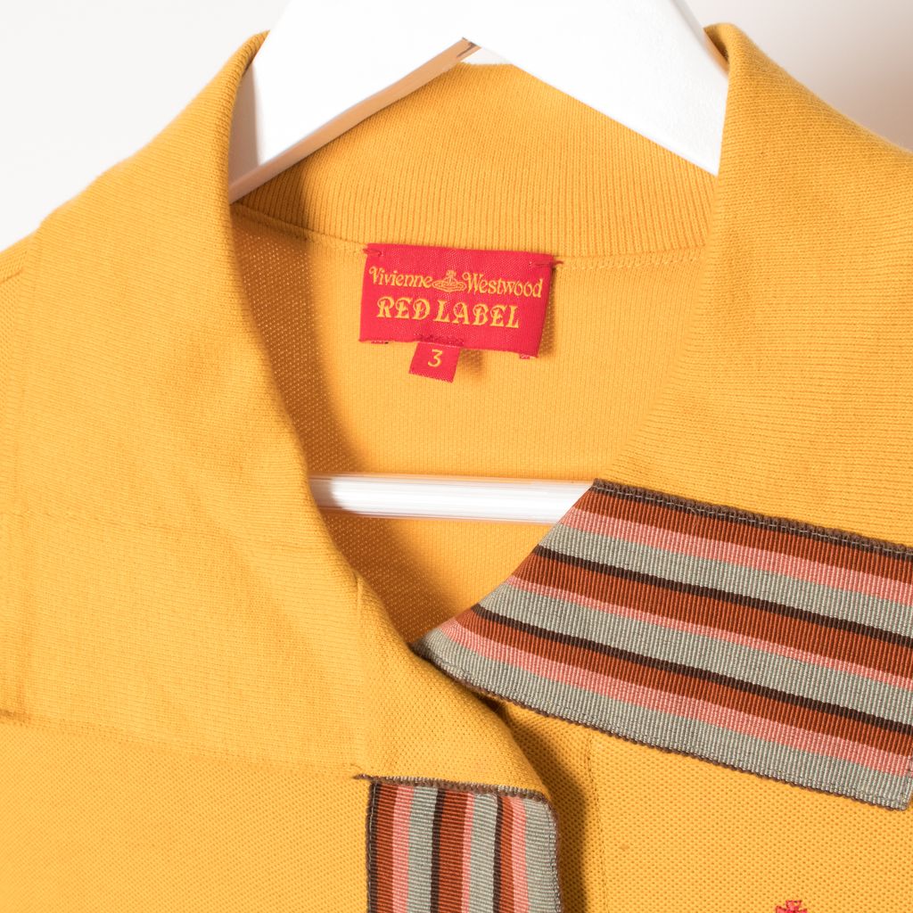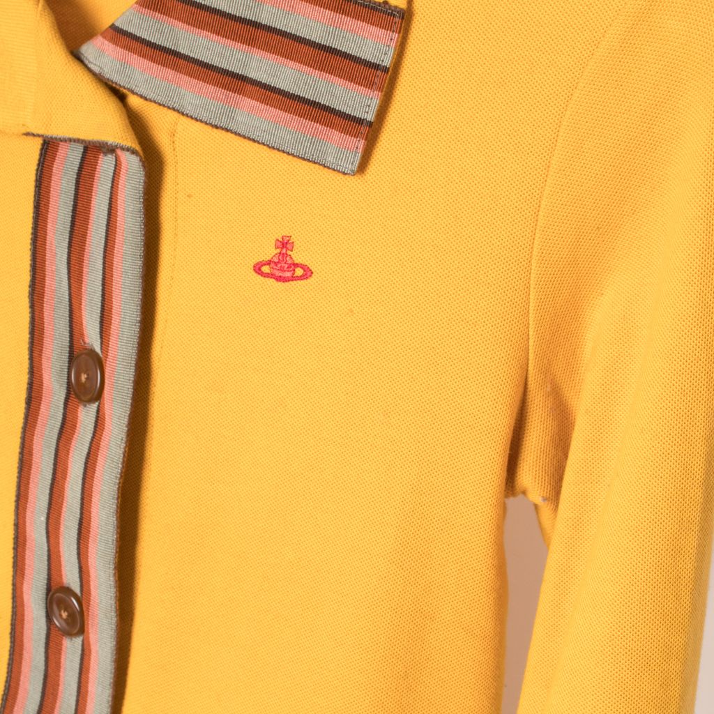 Vintage Vivienne Westwood red label sweater in mustard yellow with embroidered chest logo.