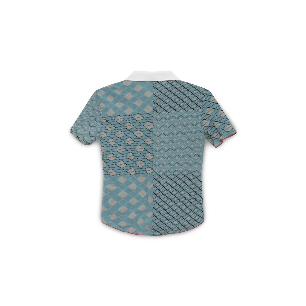 Vintage Vivienne Westwood Wolford Polo Shirt features button up closure, differentiating patterns throughout, slightly elastic fabric.