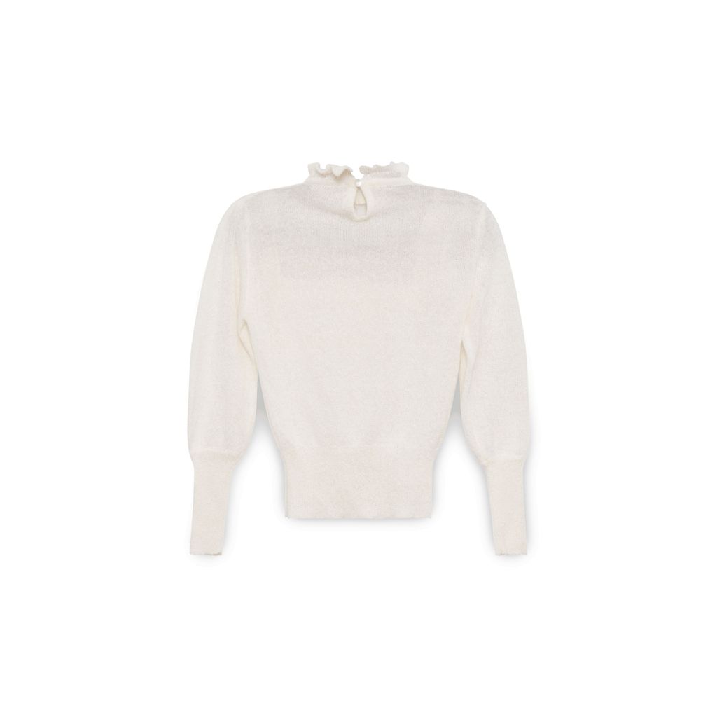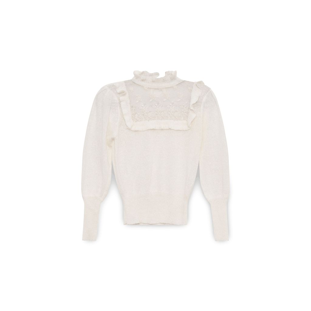 Vintage White Mesh Detailed Sweater features pullover fit, mesh and beaded floral detail.
