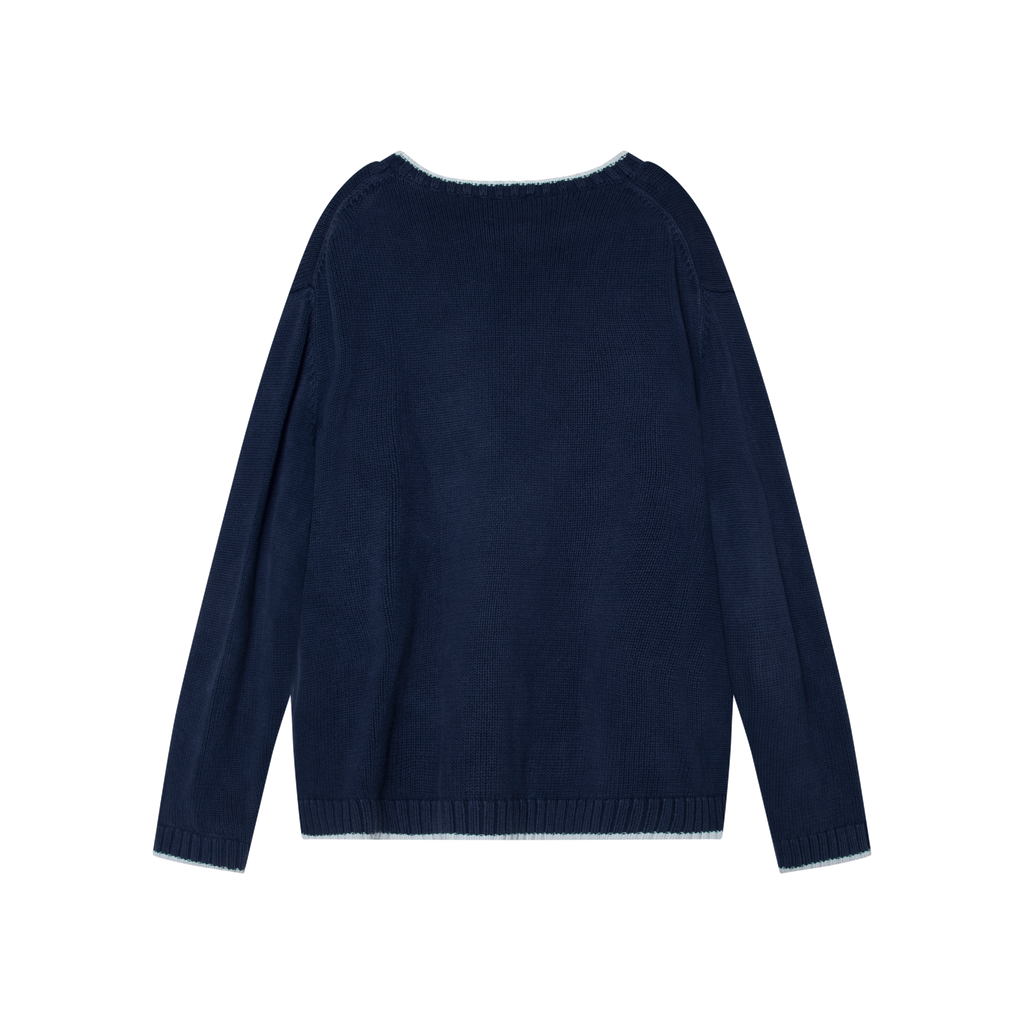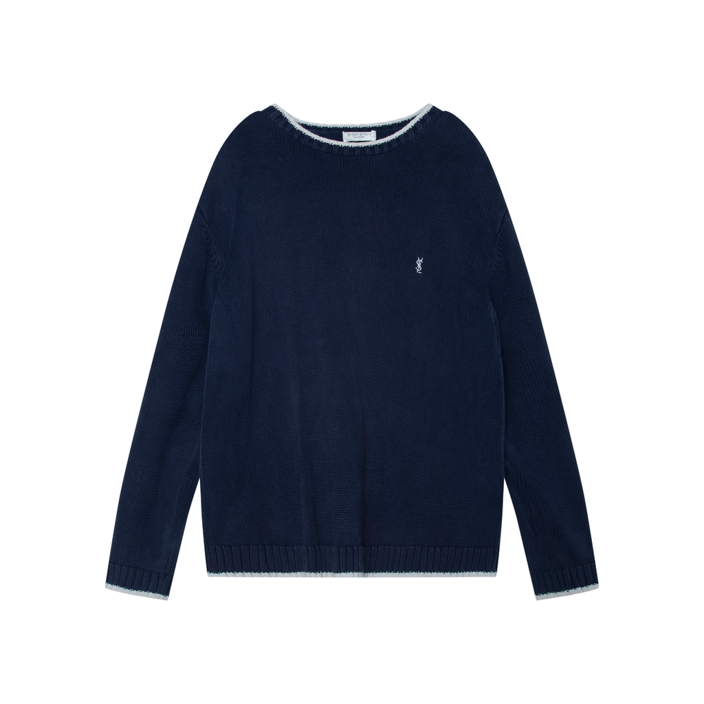 Vintage Yves Saint Laurent Navy Blue Sweater features white trim and logo embroidery on chest.