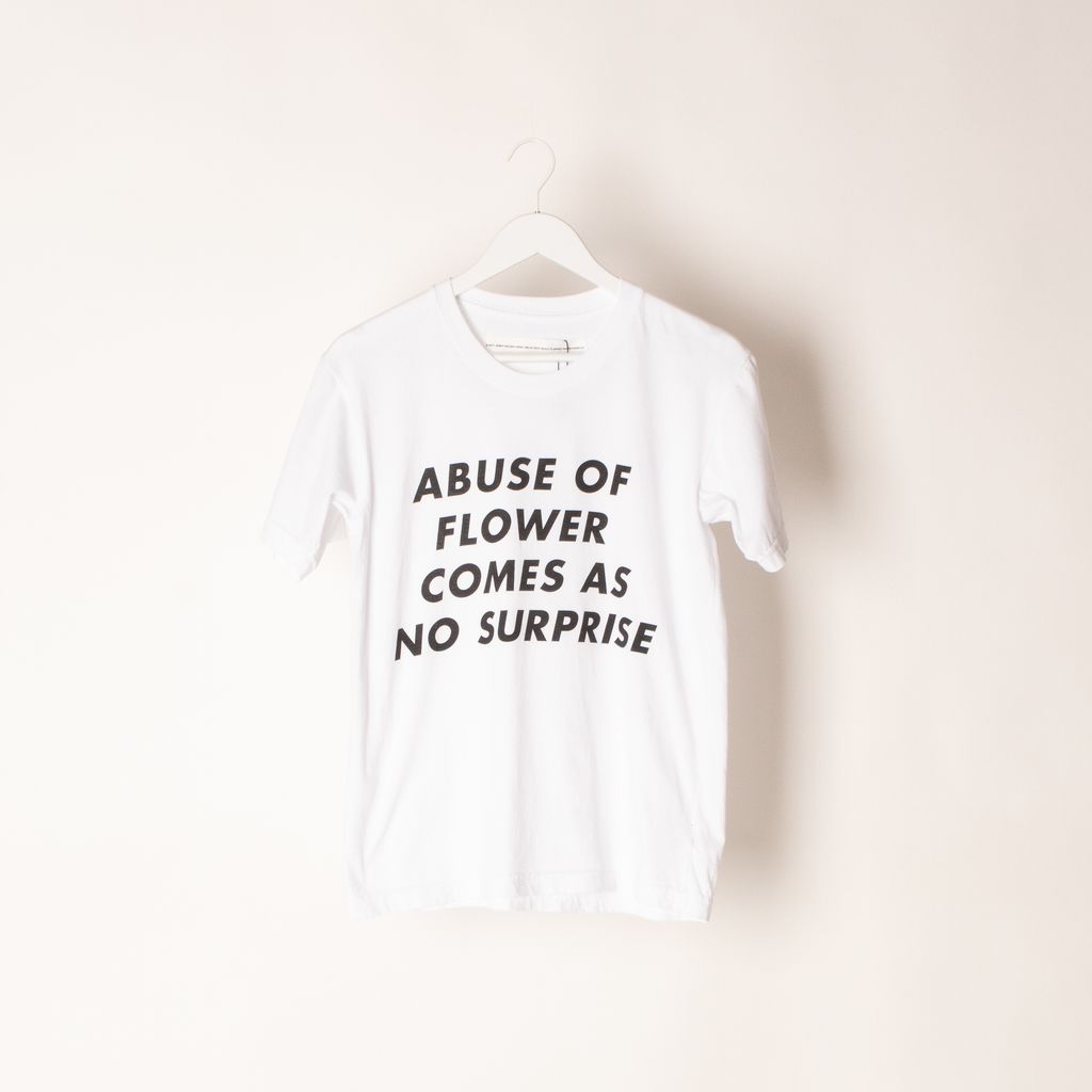 T-shirts designed exclusively for Sexy Beast, Jenny Holzer and Virgil Abloh revisited one of her most iconic and eternally relevant "truisms" – "Abuse of Power Comes As No Surprise."