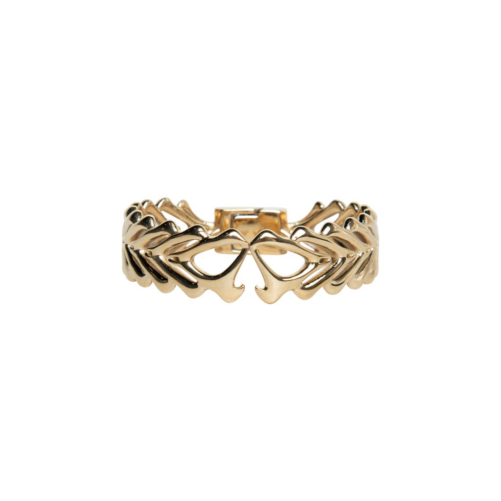 Vitaly Alcyon x Kacimi Latamene bracelet feature stainless steel goldstone metal with spring-loaded hinging mechanism at the cuff's base. Bracelet comes with original box.