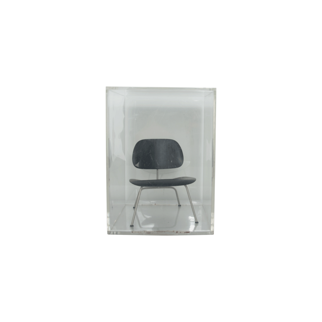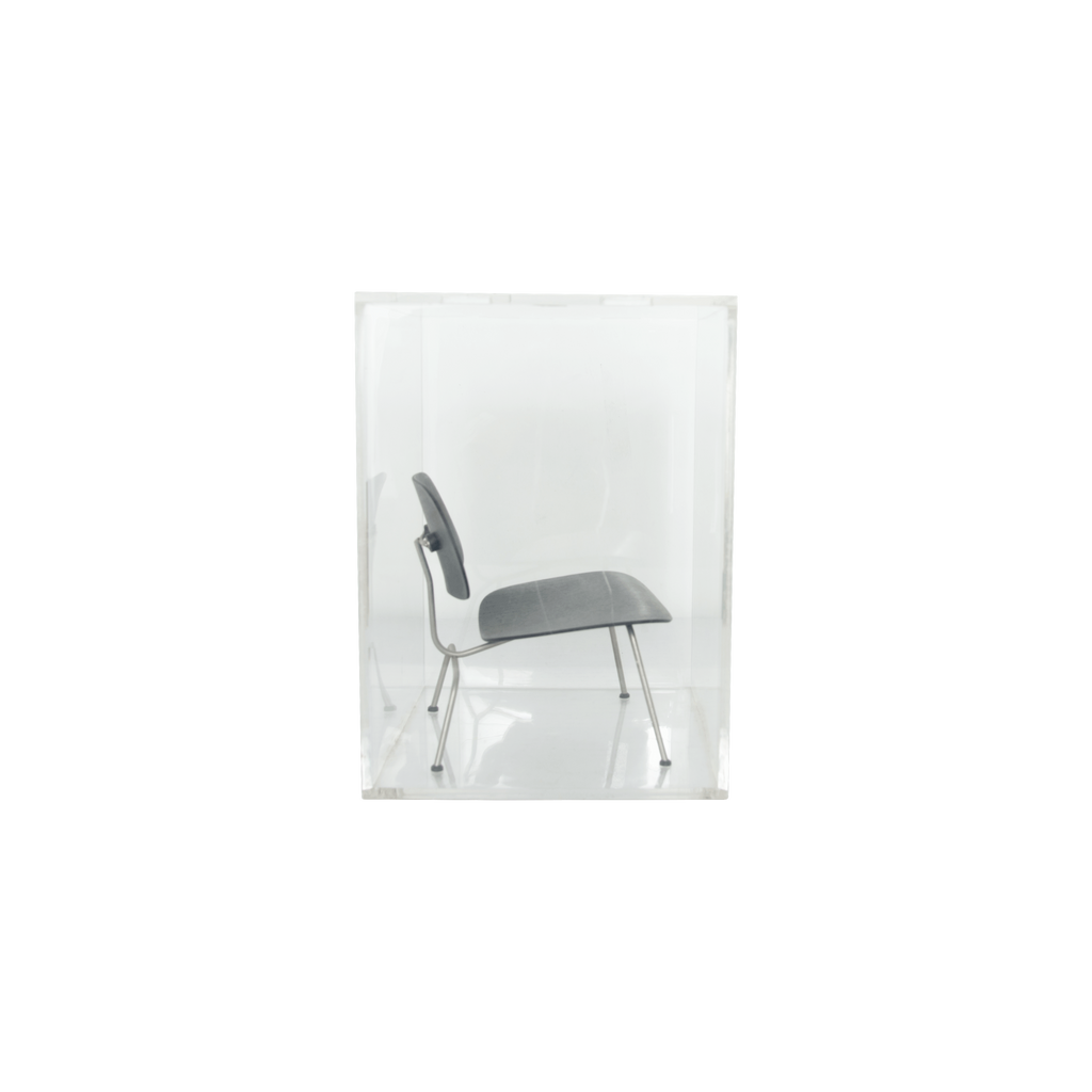 Vitra Mini LCM Eames Chair features miniature black plastic Eames chair.