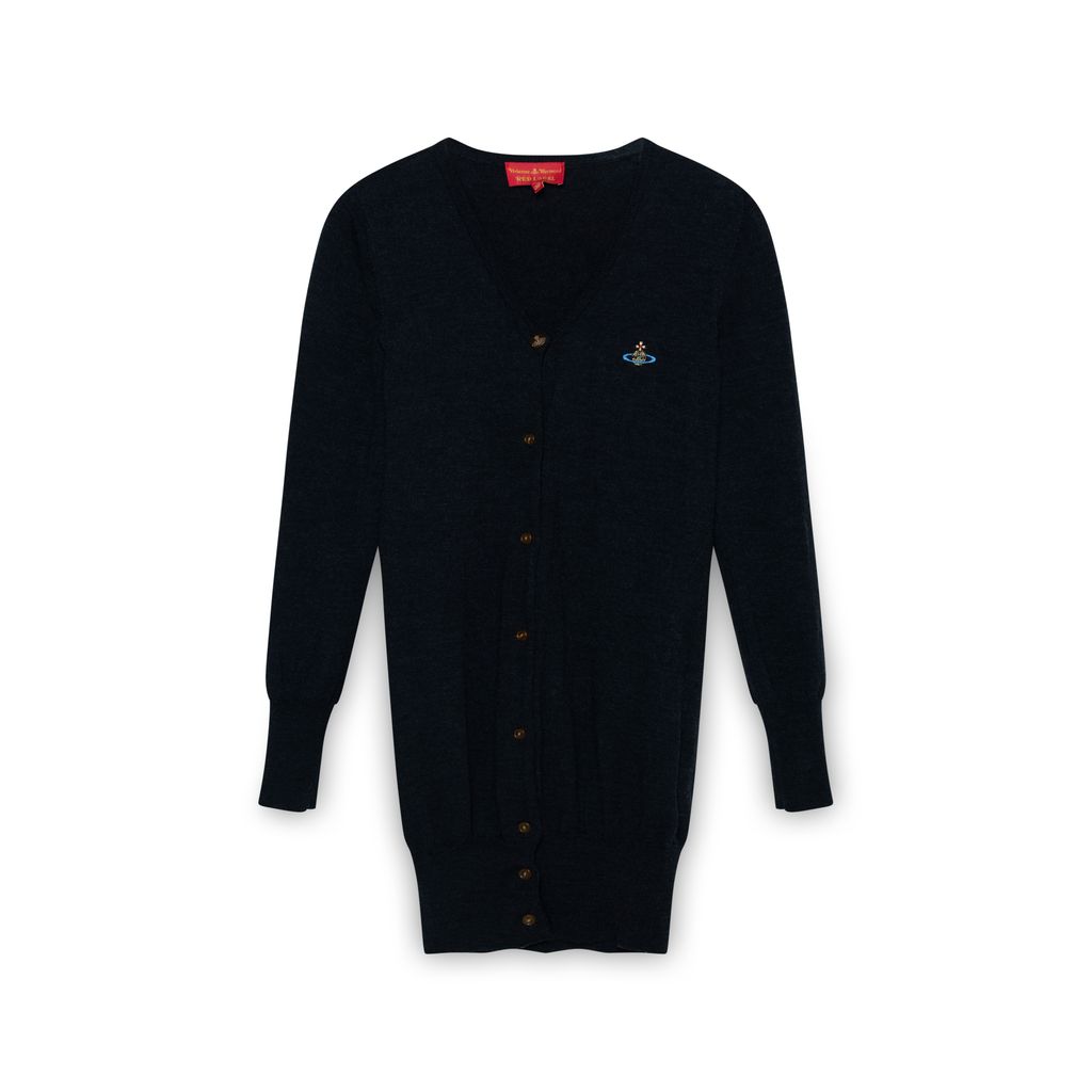 Vivienne Westwood Red Label Grey Cardigan features logo embroidery on left chest, logo engraved into top button, and V-neck.