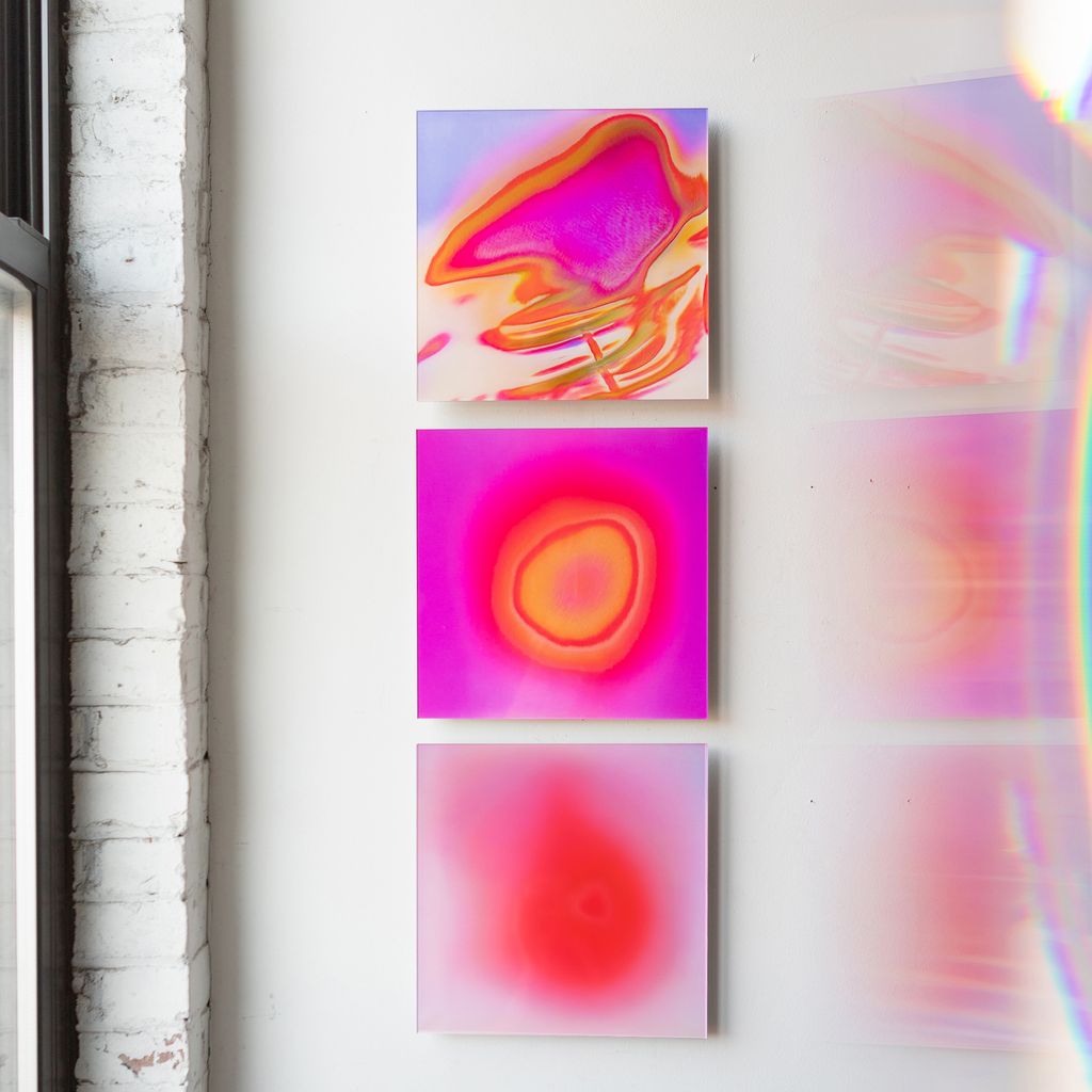 12x12" gallery quality acrylic paint, edition of 10. Aluminum mounting hardware included. Each print is made-to-order and will ship 1-2 weeks of order date. These modular sets can be mixed, matched and rearranged to suit your space.