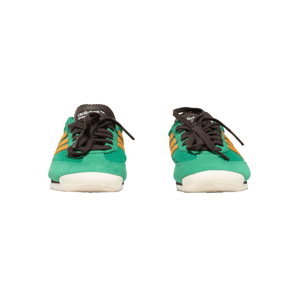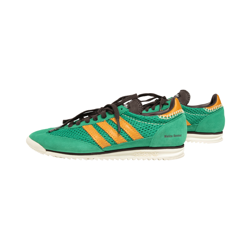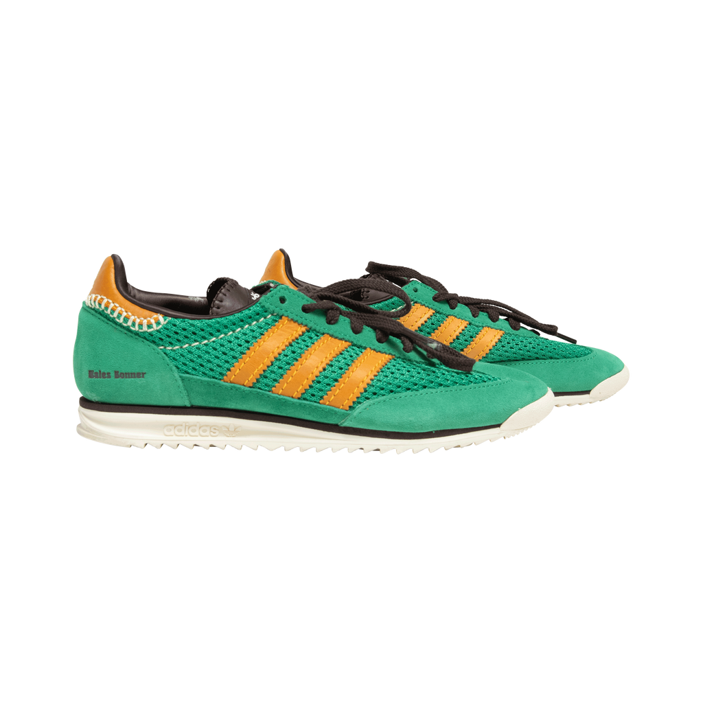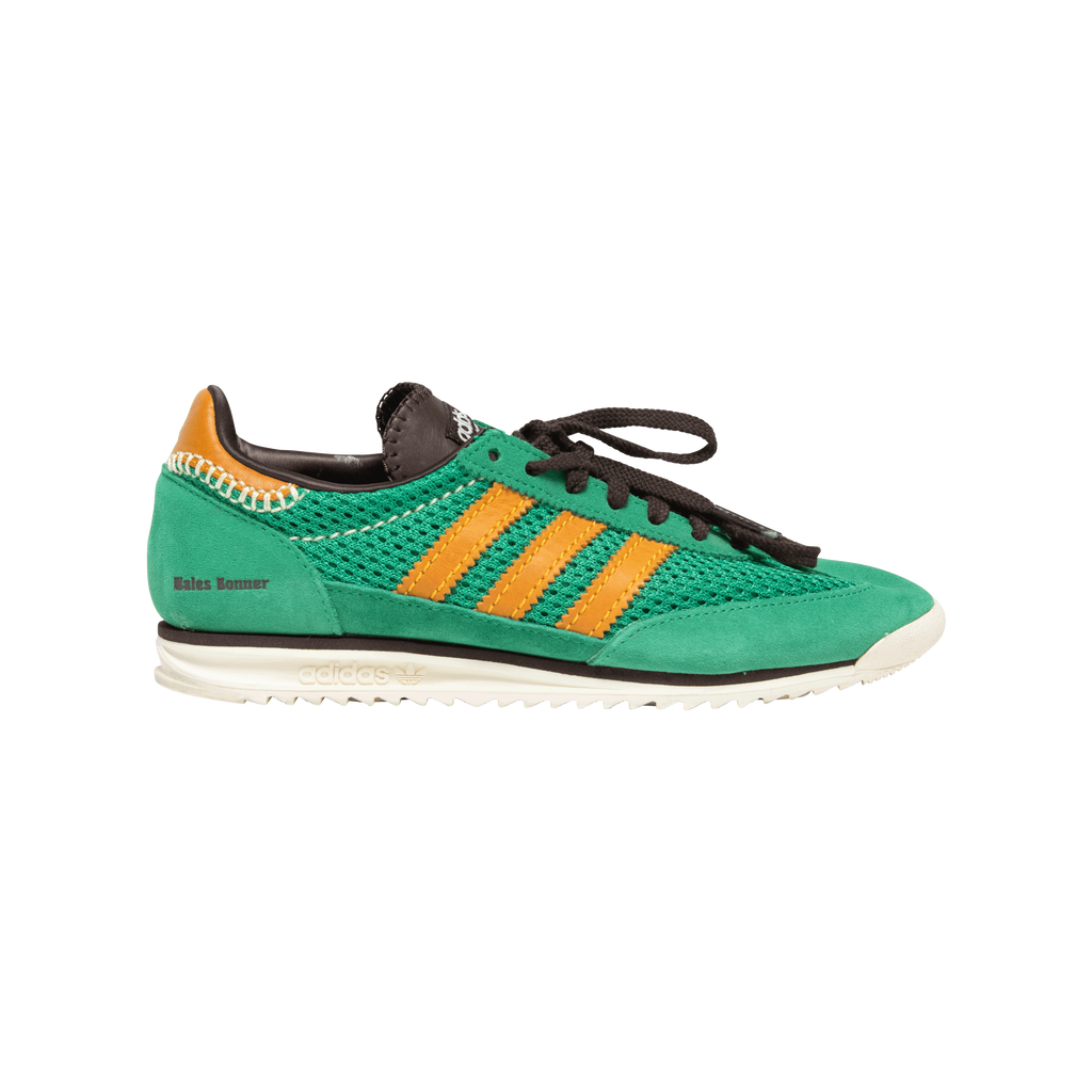 Wales Bonner x Adidas SL72 Knitted Sneakers features calf suede, mesh detailing, signature 3-Stripe logo, logo patch at tongue, round toe, front lace up fastening, branded insole, and flat rubber sole.