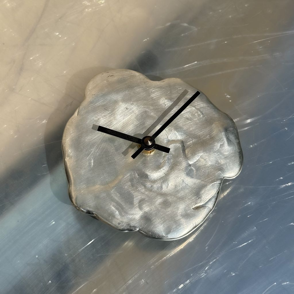 This wall clock is made using free form cast technique, making each piece one of a kind with buildt in qvartz work.