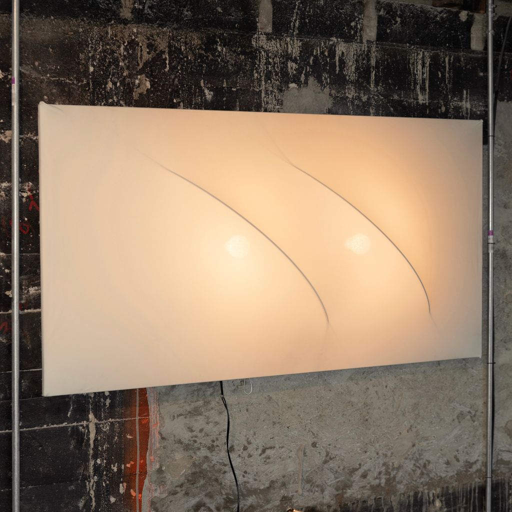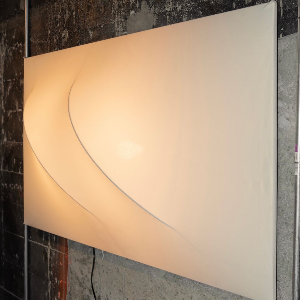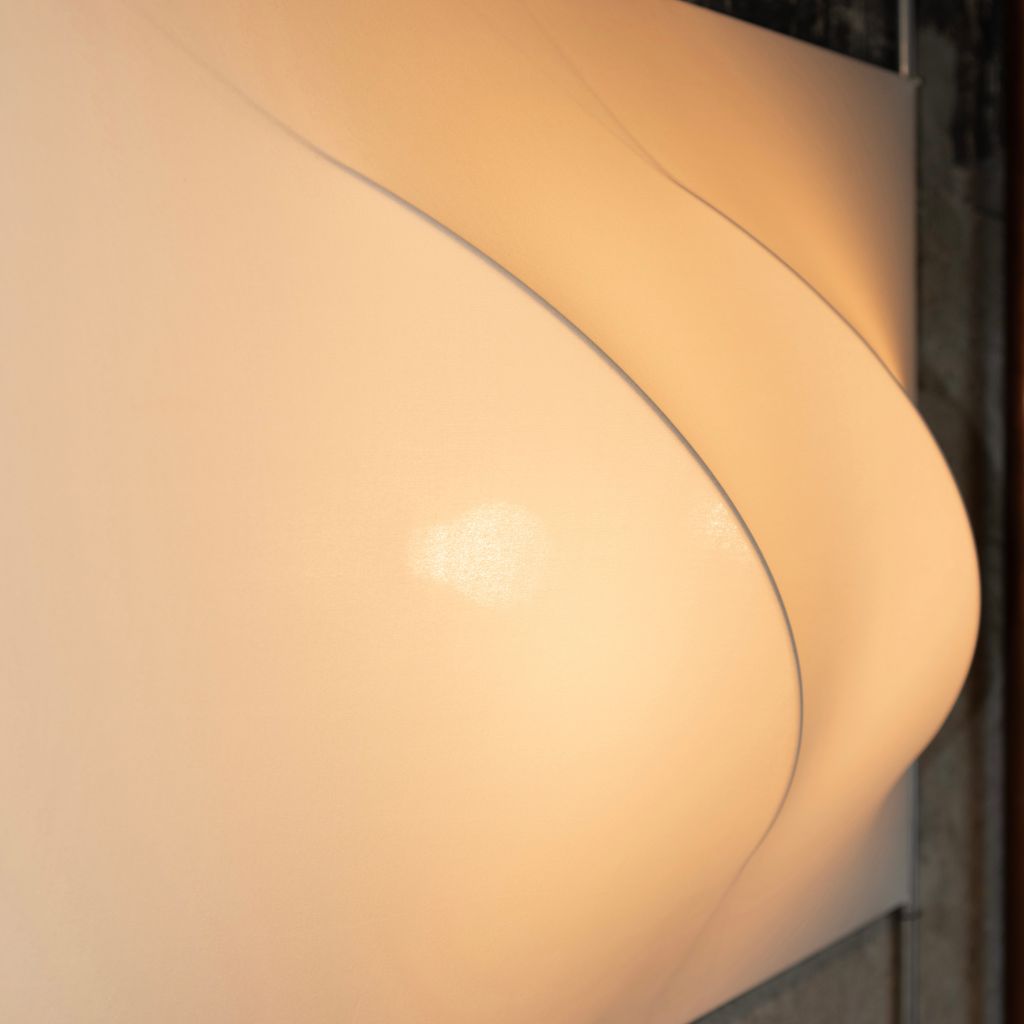 Wall light features 2 bulbs and a raised surface. On or off, this wall light doubles as a lighting fixture and a piece of wall art.