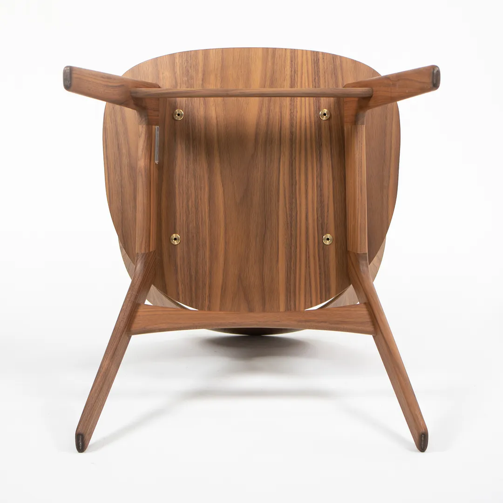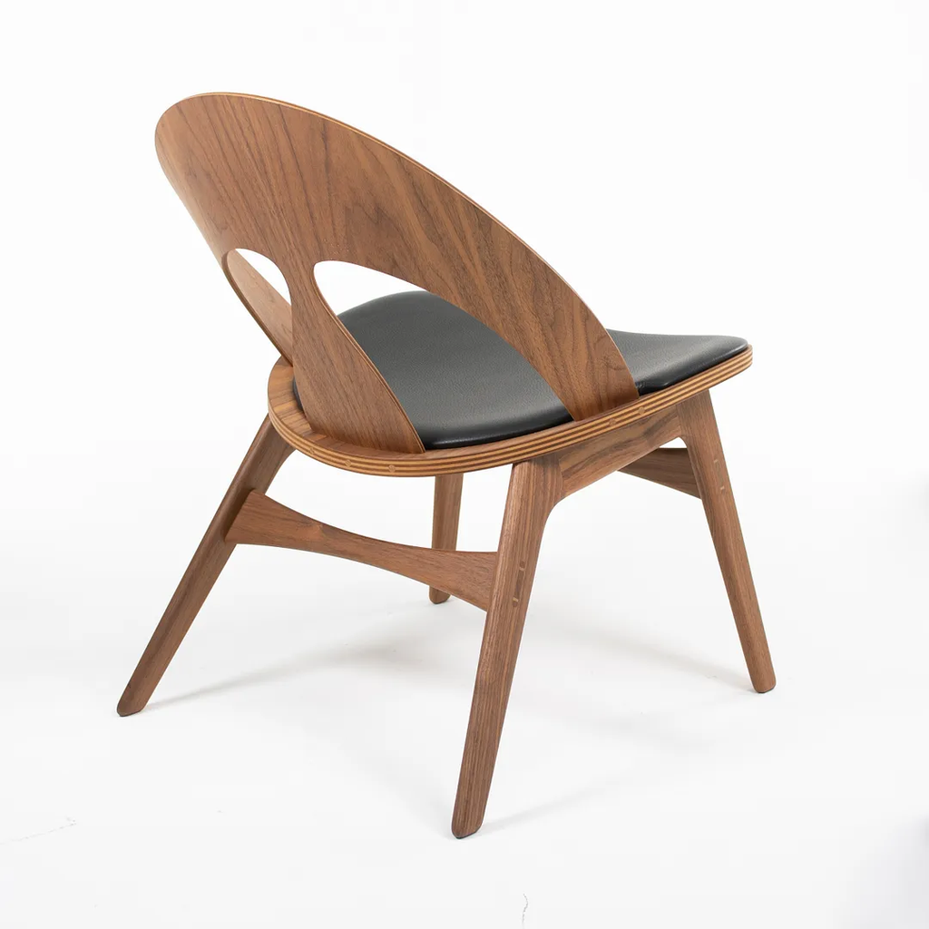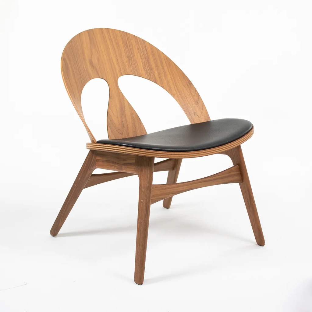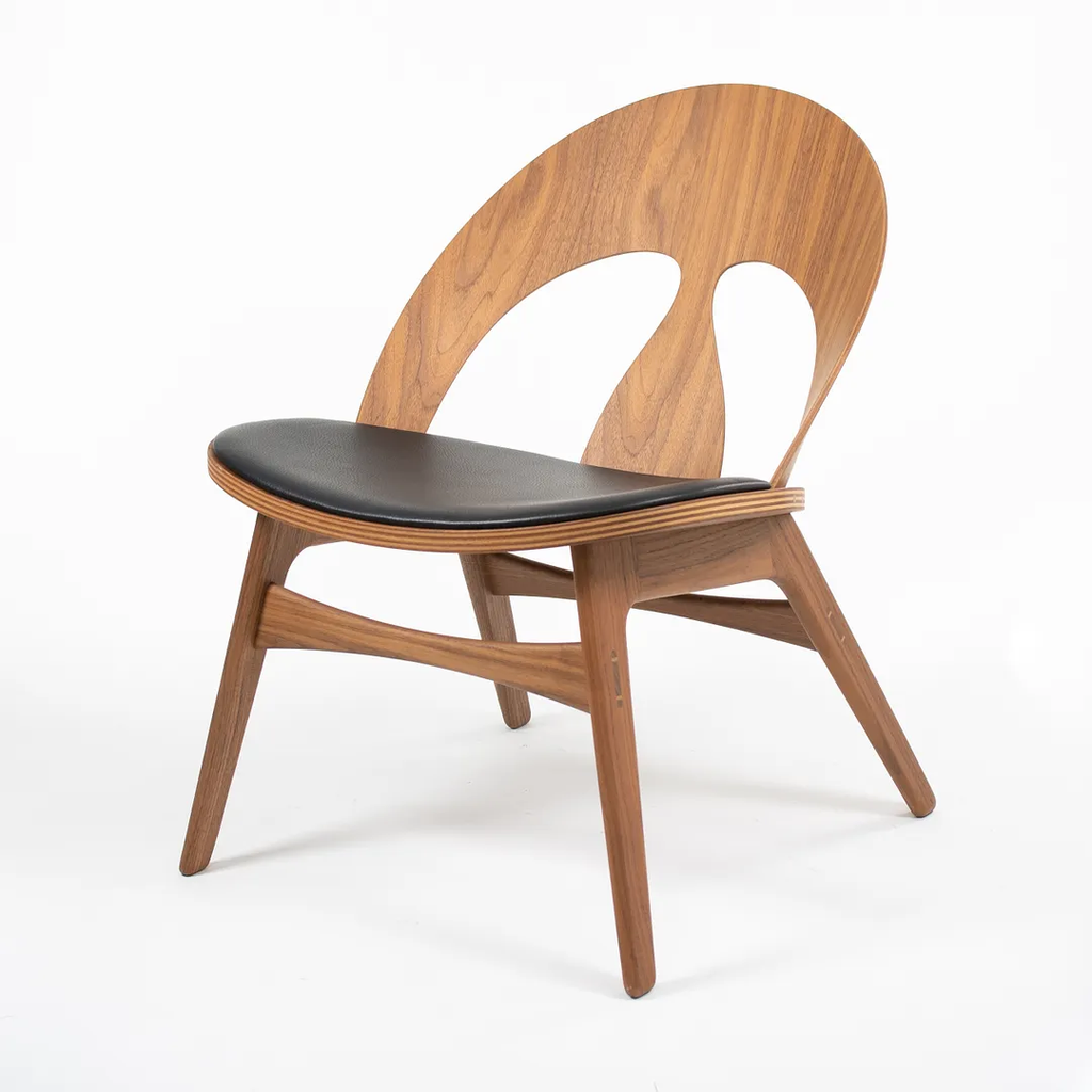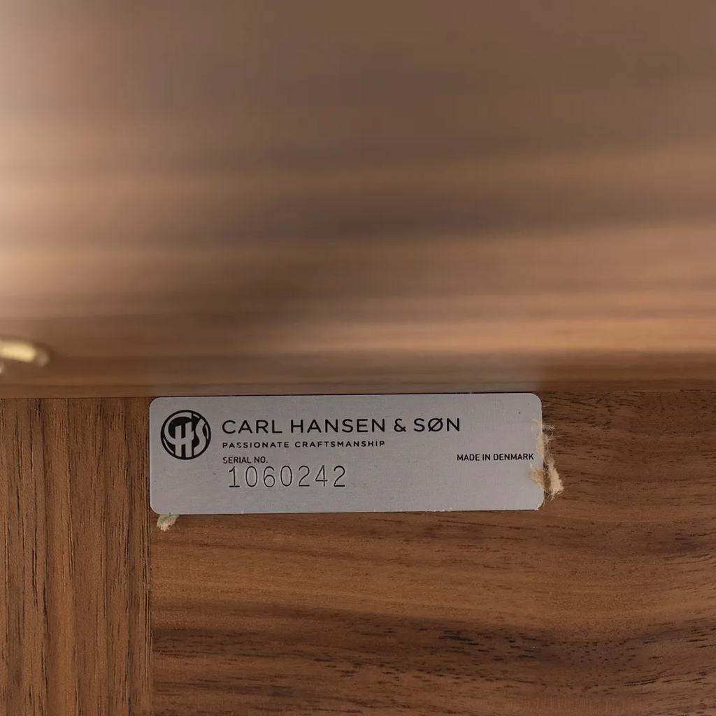 This is a BM0949P Contour lounge chair with a solid oiled walnut frame and black Loke 7150 leather seat. The chair was designed by Borge Mogensen and produced by Carl Hansen & Son in Denmark. It was made circa 2021 and is guaranteed as authentic. Condition is excellent with only minimal wear. See photos. This chair came directly from Carl Hansen. It was likely never used in a home or office setting but may have been a display model within their showroom.