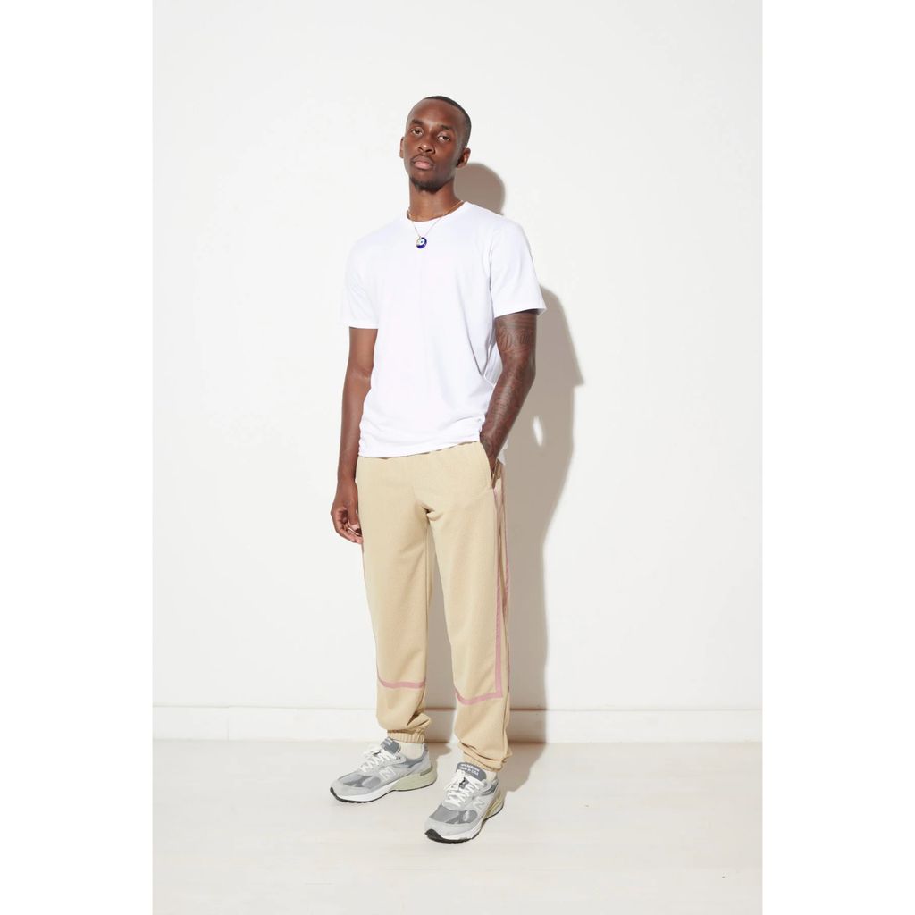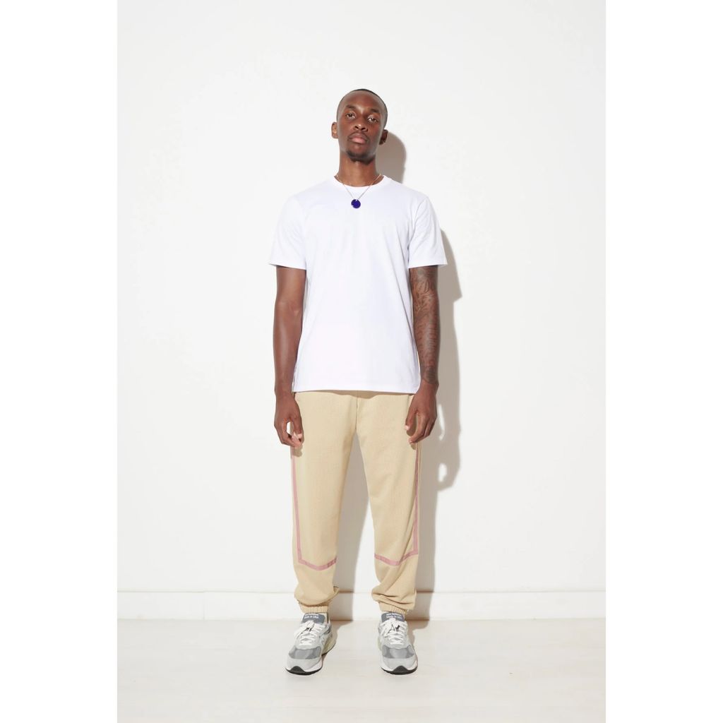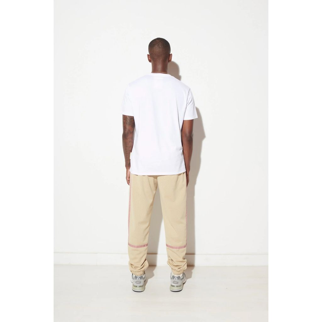Warm Up Pants are inspired by classic basketball warm ups and features our signature heavyweight eyelet mesh, full lining with breathable tricot lining, contrast Japanese grosgrain creates athletic stripes at either side, pockets at either side with zipper enclosures, patch pocket on back right side, drawcord at the waistband, snap button at the leg opening for options when styling, and drawcord at the waistband.