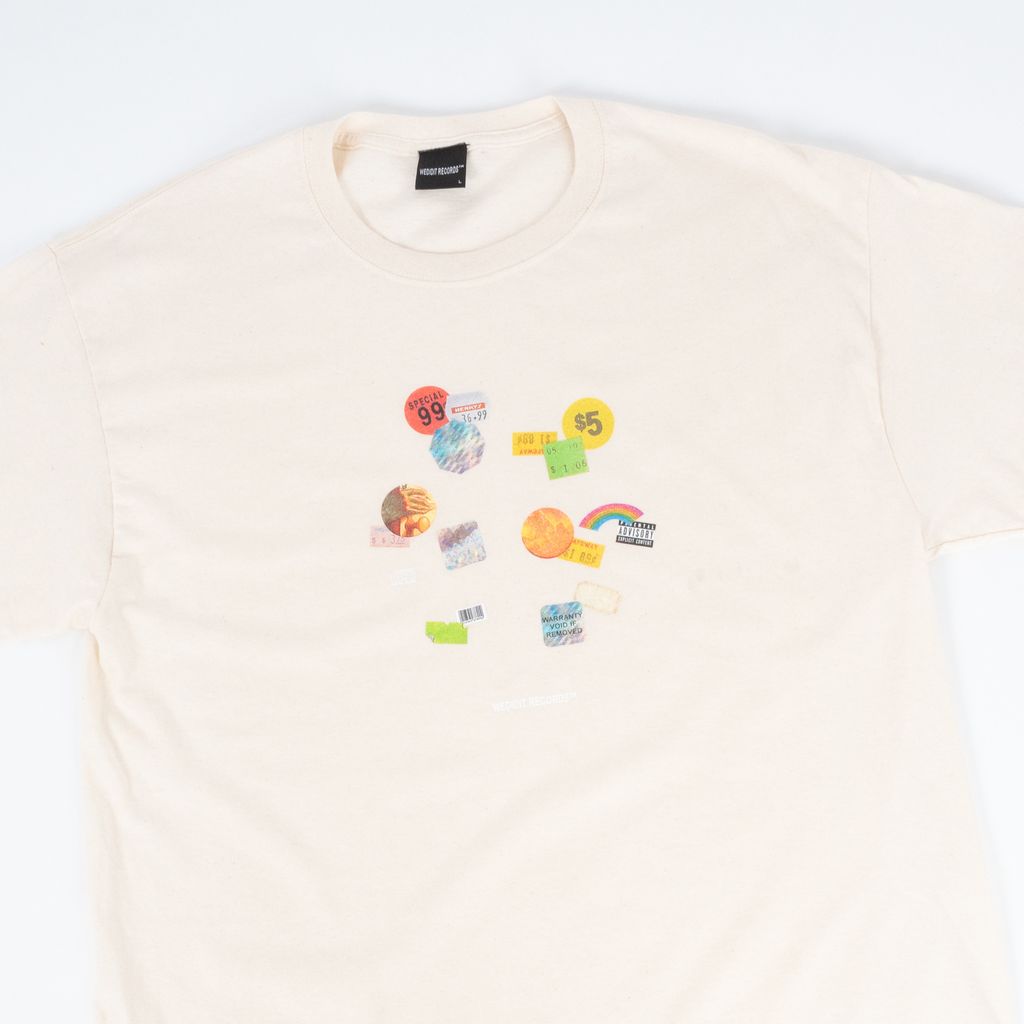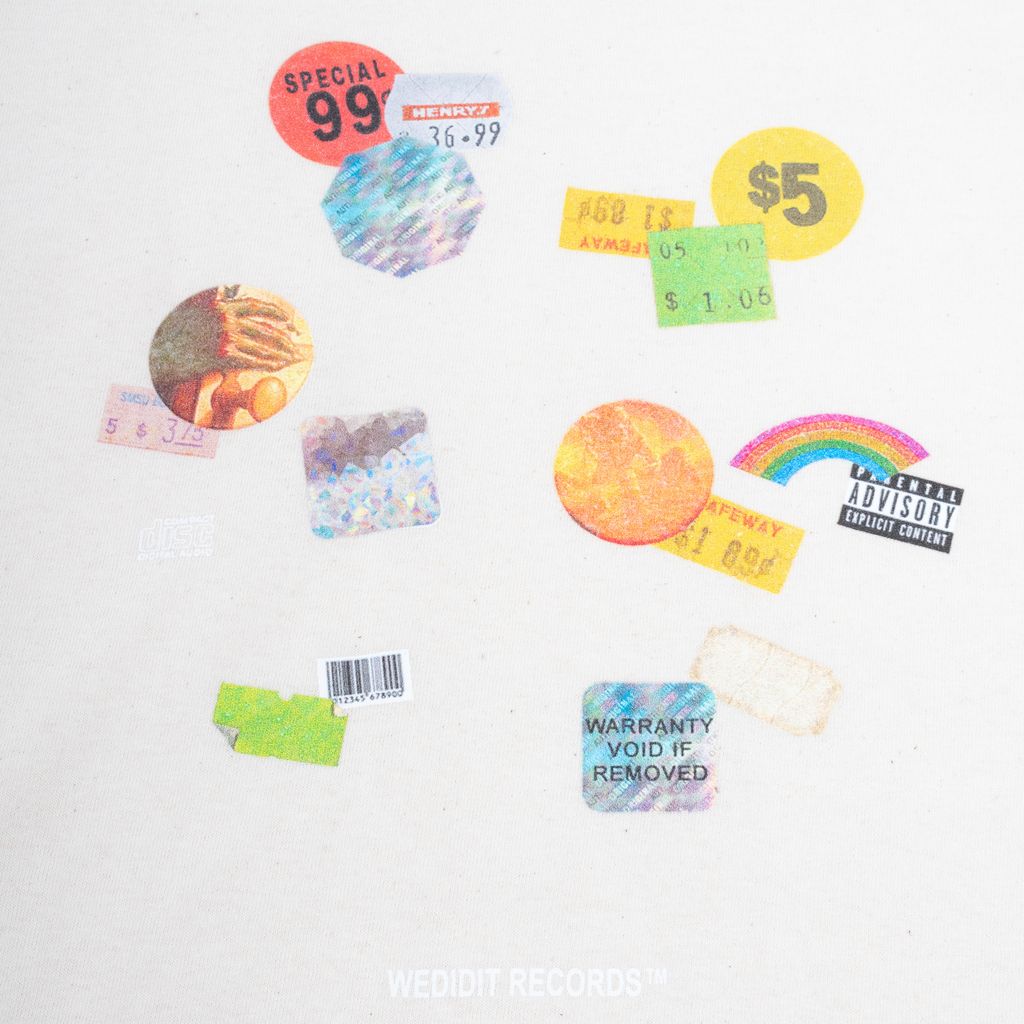 From Los Angeles based music collective WeDidIt, this tee takes its inspiration from record store crate digging days. Features relaxed fit, crew shaped neck, and sticker graphic on chest with WeDidIt text underneath.