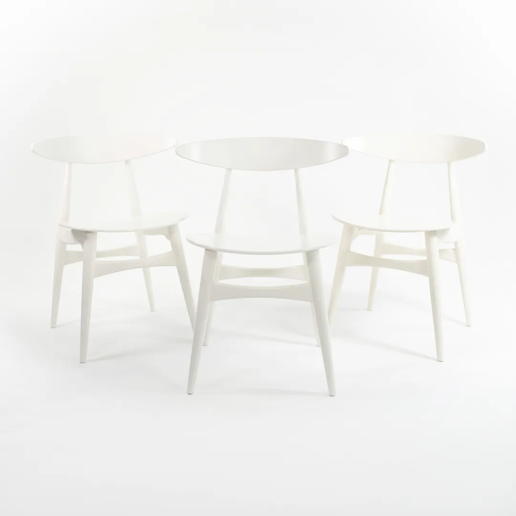 These are three (sold separately) CH33T Chairs, designed by Hans Wegner and produced by Carl Hansen & Son in Denmark. The chairs are made with a solid beech frame, painted white. These chairs date to circa 2021 and are guaranteed as authentic. Condition is excellent with only minimal wear. See photos. These chairs came directly from Carl Hansen. They were likely never used in a home or office setting but may have been display/floor models within their showroom.
