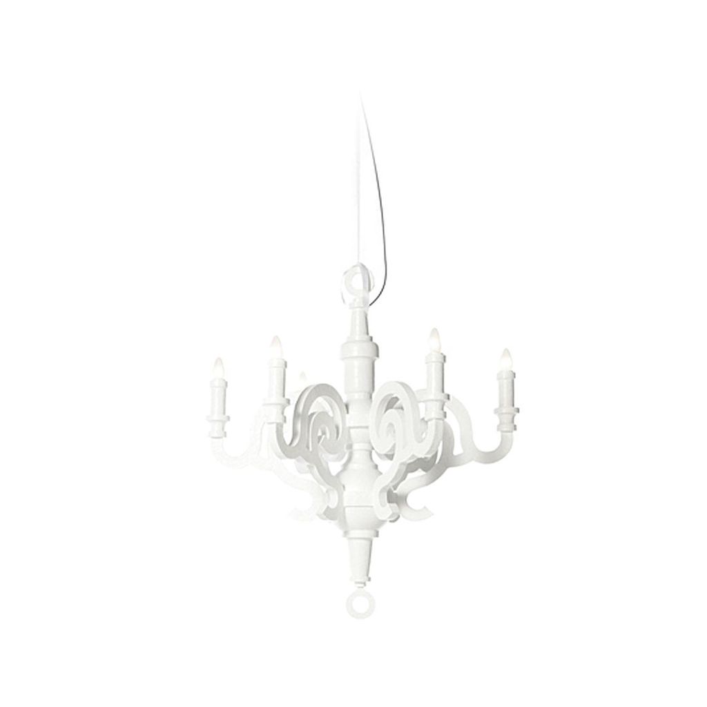 Listed for sale are four (sold separately) large Paper Chandeliers made of wood and cardboard, finished with paper and polyurethane lacquer. The chandelier was designed by Studio Job and produced by Moooi in the Netherlands. It dates to circa 2022 and is guaranteed as authentic. Condition is excellent without notable signs of wear. It appears to have never been hung up and came from MOOOI directly in its original box.