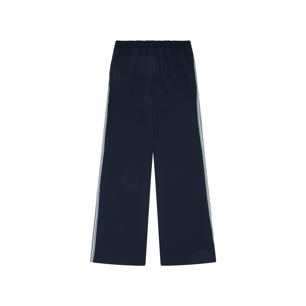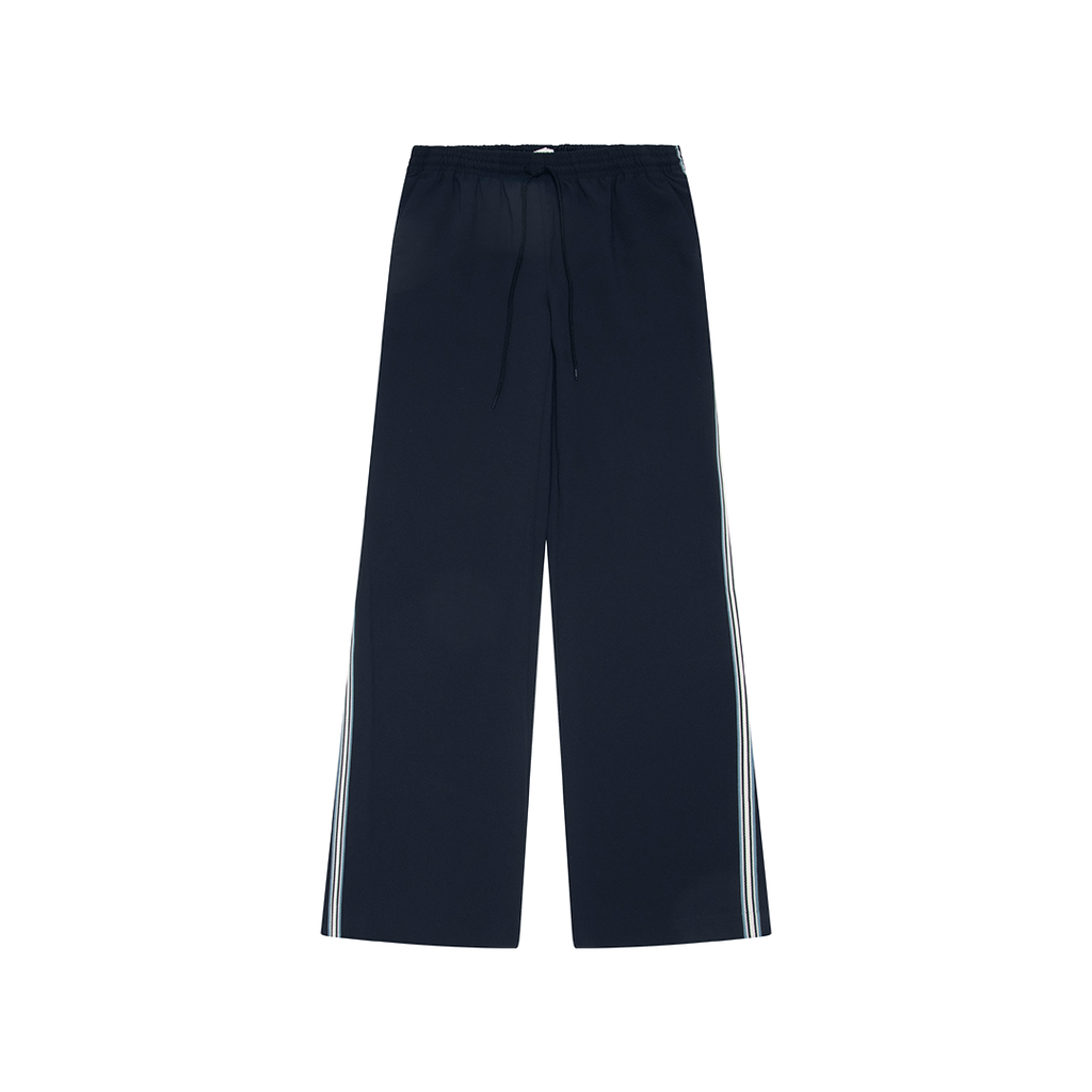 Wilfred Thesis Pant features elasticized waist band, drawstring, two front pockets, and relaxed wide-leg fit.