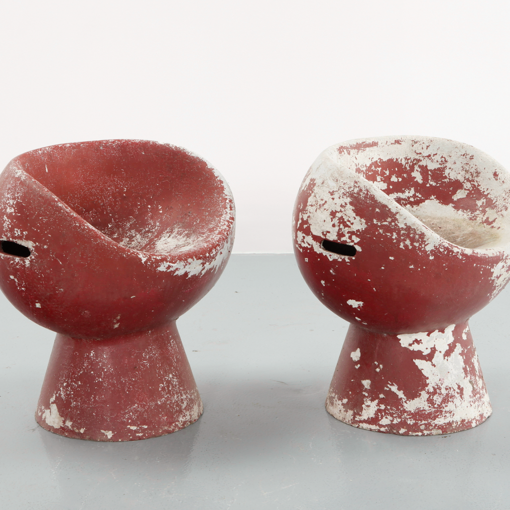 Switzerland, 1960s. A bold expression of sculptural modernism, the Pod Chair by Willy Guhl is a striking fusion of form, color, and material. Rendered in a reare red finish, the chair’s organic, cocoon-like silhouette feels both playful and architectural.