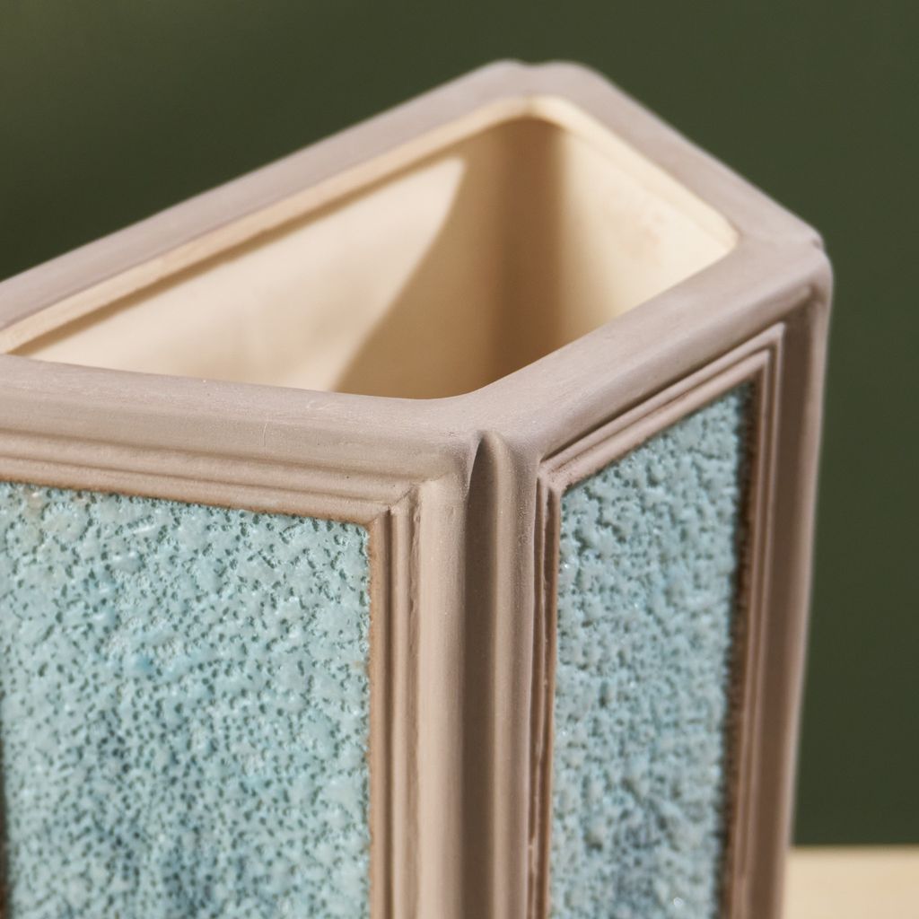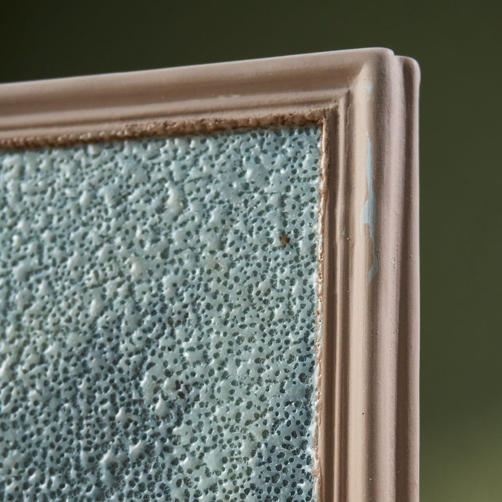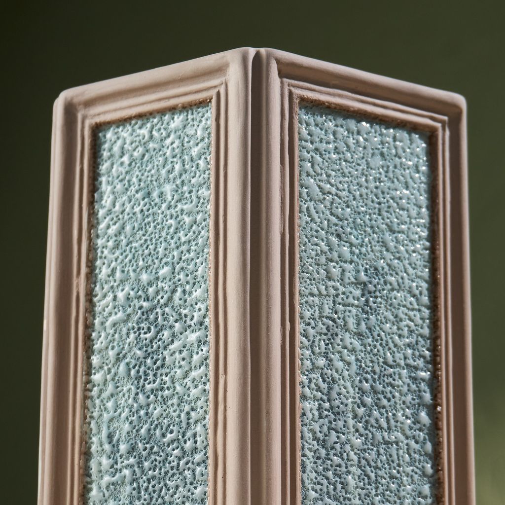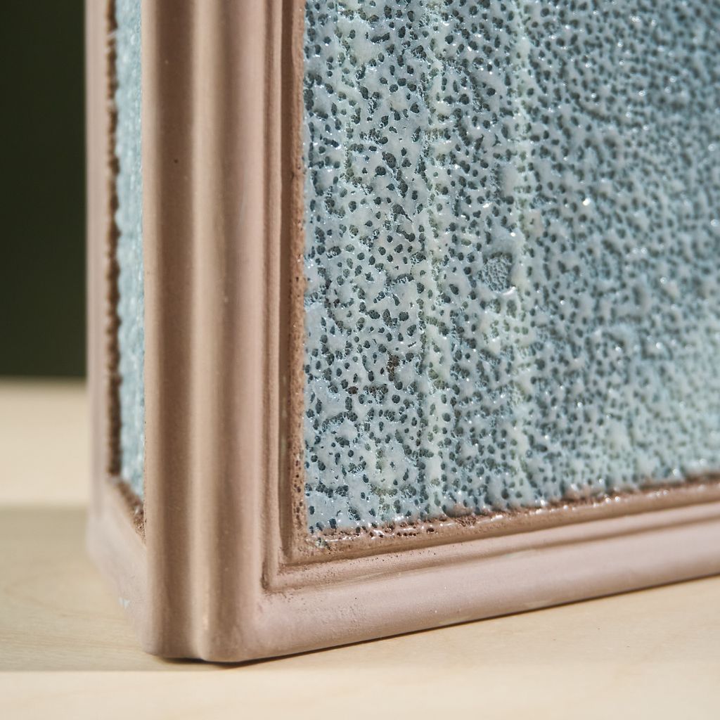 This sculpture is inspired by the moisture-covered windows often seen in the Netherlands. The artist translated the soft, blurred landscapes created by condensation into ceramic works. Using a glaze developed specifically for this series, the surfaces capture the appearance of moisture gathering. The collection reflects brief, disappearing moments of daily life through a quiet, poetic lens. She is currently expanding the Condensation Collection, first presented at Dutch Design Week 2025.