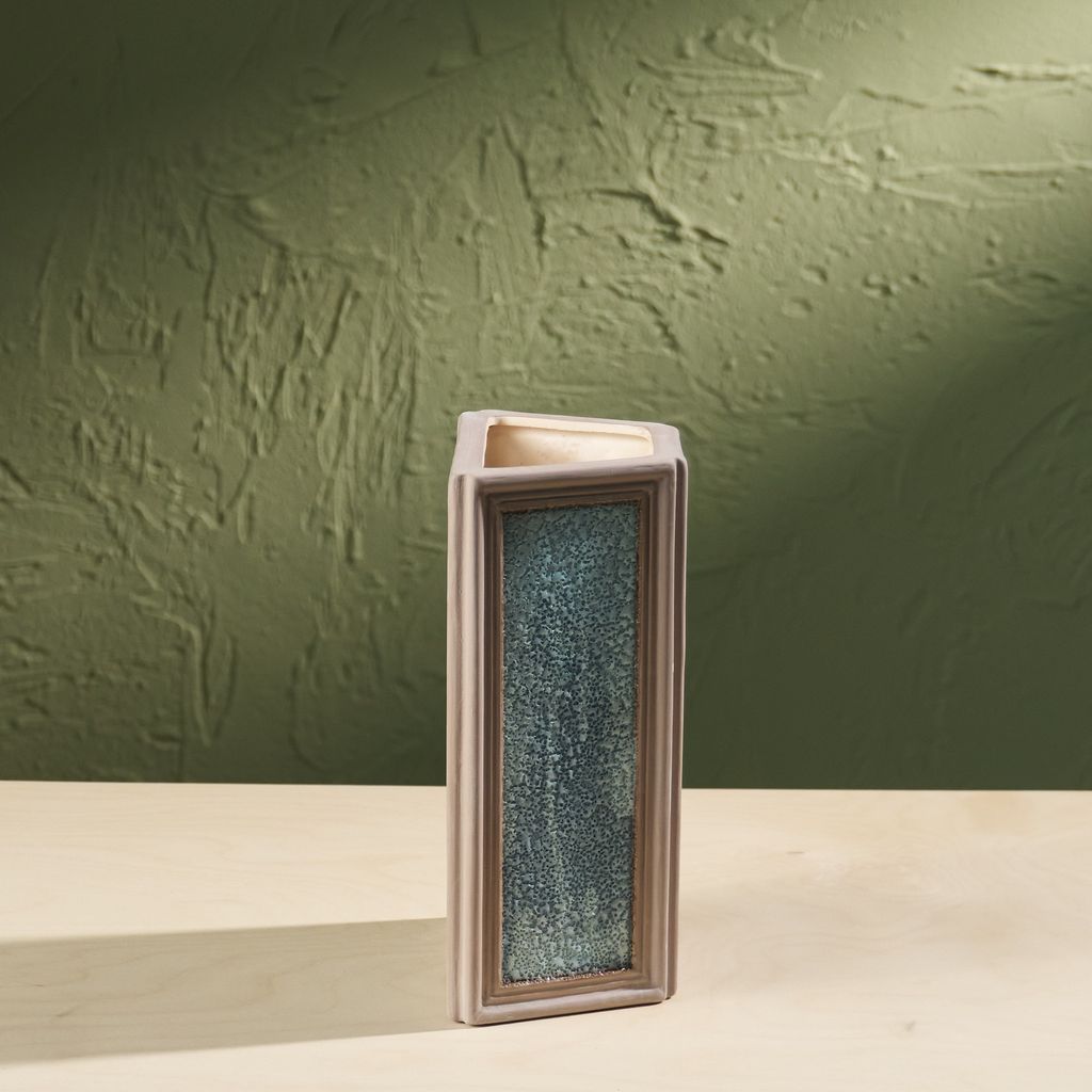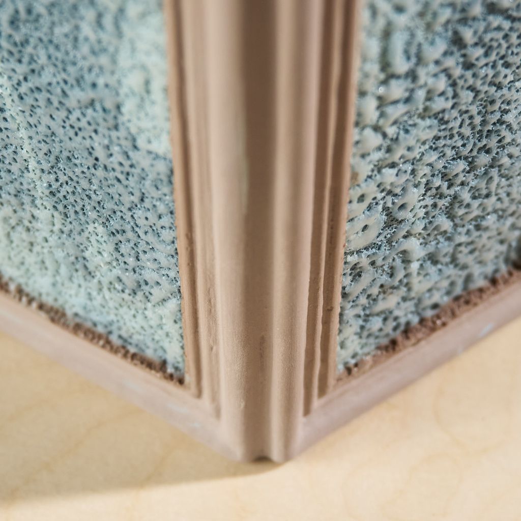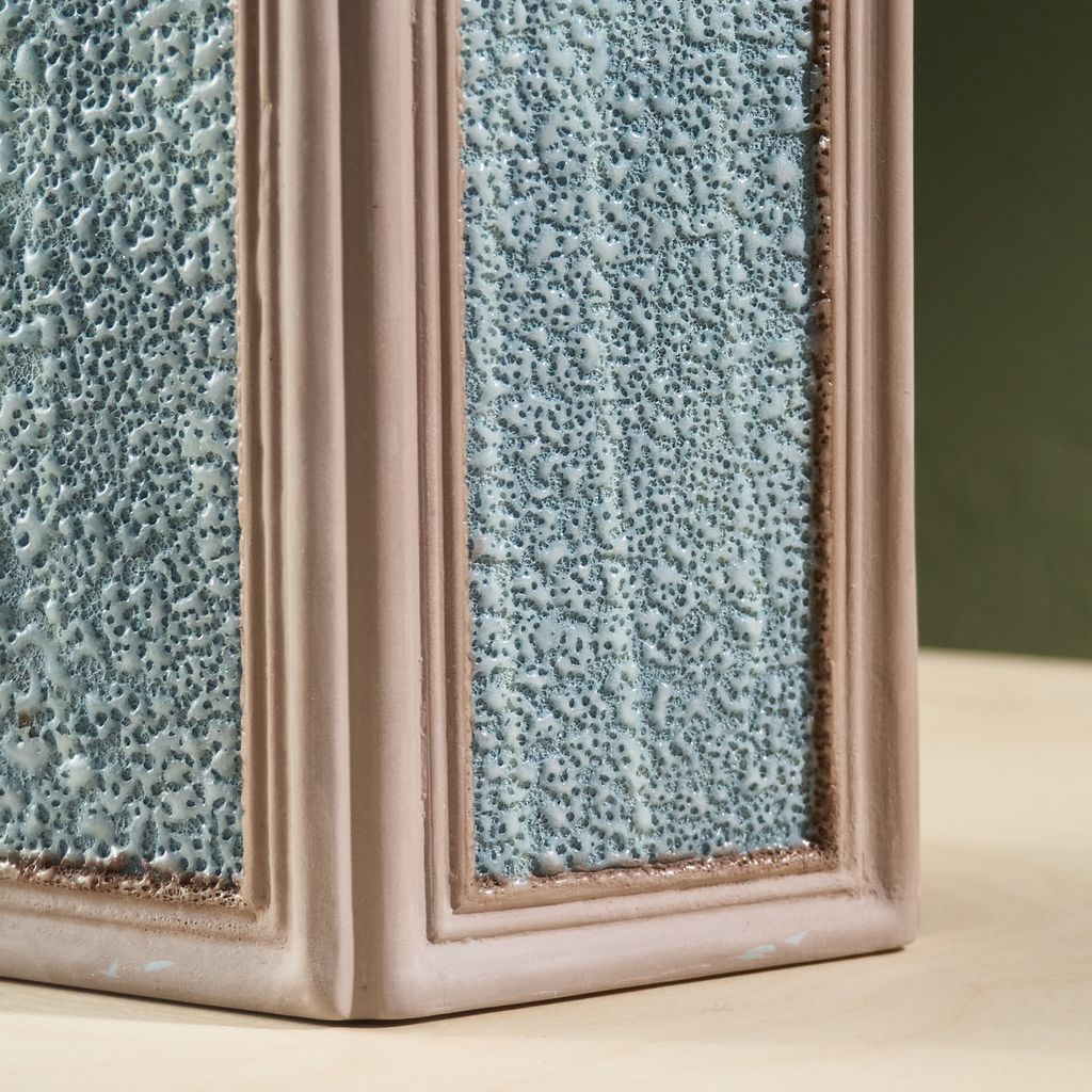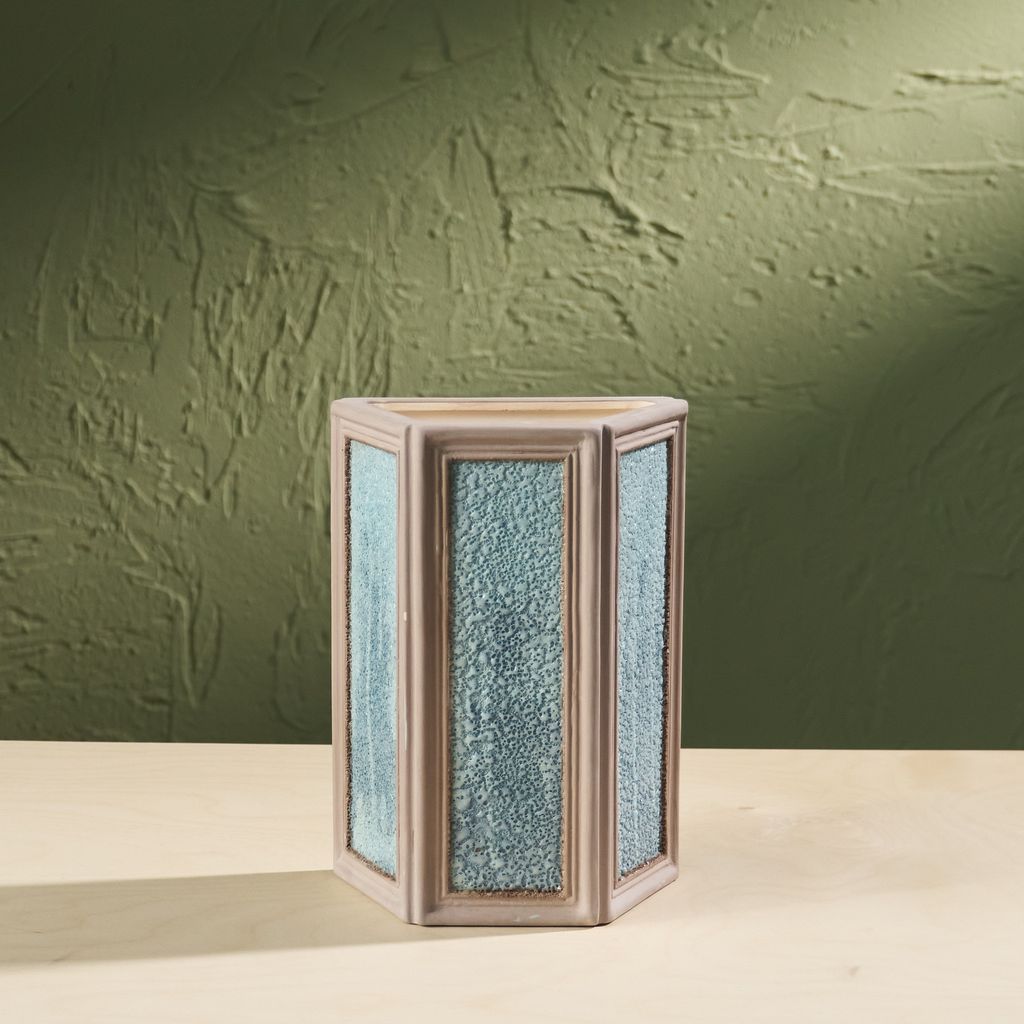This sculpture is inspired by the moisture-covered windows often seen in the Netherlands. The artist translated the soft, blurred landscapes created by condensation into ceramic works. Using a glaze developed specifically for this series, the surfaces capture the appearance of moisture gathering. The collection reflects brief, disappearing moments of daily life through a quiet, poetic lens. She is currently expanding the Condensation Collection, first presented at Dutch Design Week 2025.