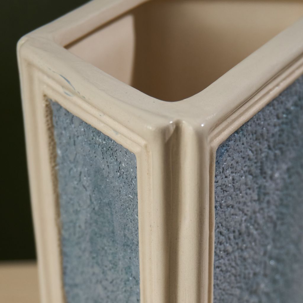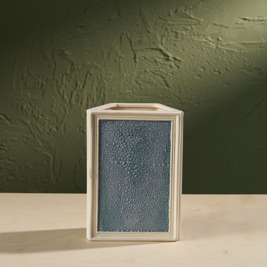 This sculpture is inspired by the moisture-covered windows often seen in the Netherlands. The artist translated the soft, blurred landscapes created by condensation into ceramic works. Using a glaze developed specifically for this series, the surfaces capture the appearance of moisture gathering. The collection reflects brief, disappearing moments of daily life through a quiet, poetic lens. She is currently expanding the Condensation Collection, first presented at Dutch Design Week 2025.