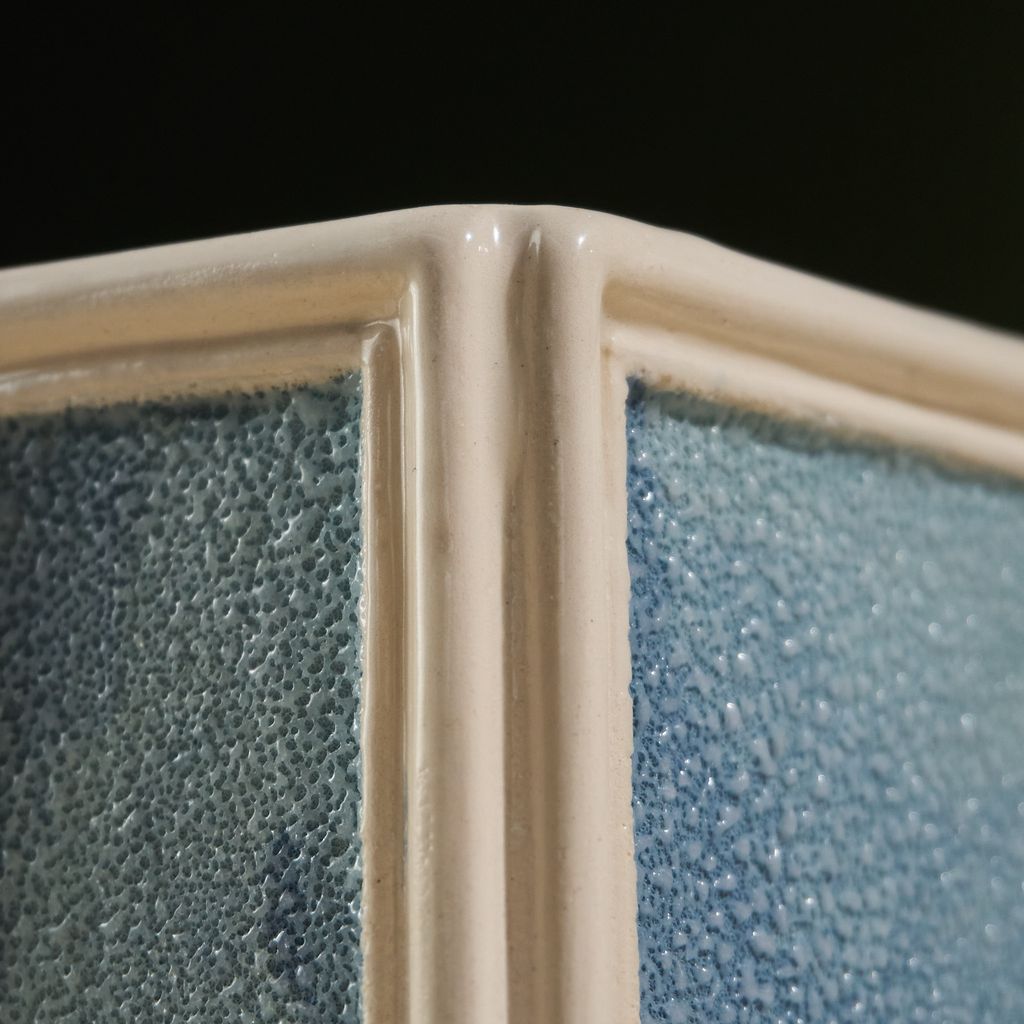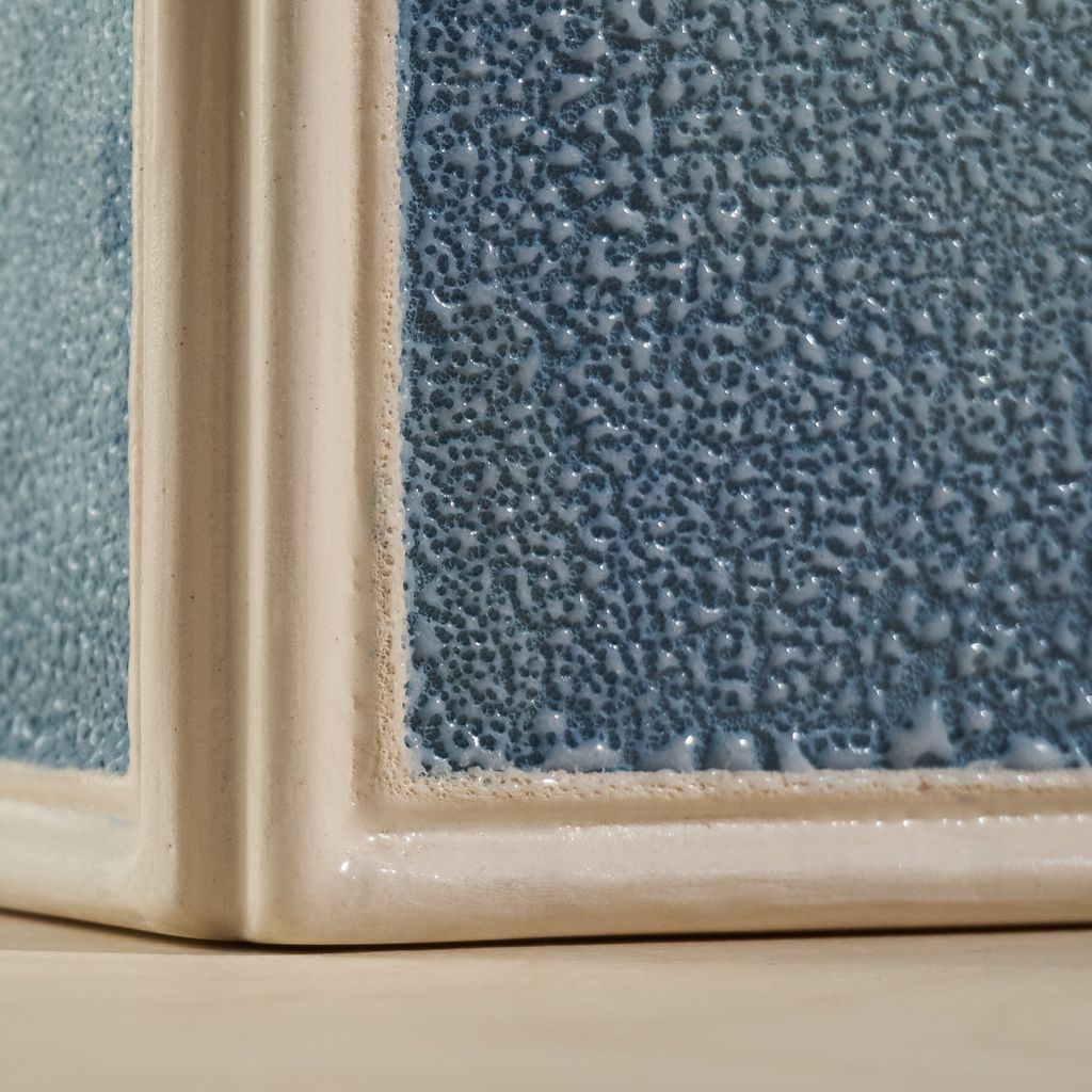This sculpture is inspired by the moisture-covered windows often seen in the Netherlands. The artist translated the soft, blurred landscapes created by condensation into ceramic works. Using a glaze developed specifically for this series, the surfaces capture the appearance of moisture gathering. The collection reflects brief, disappearing moments of daily life through a quiet, poetic lens. She is currently expanding the Condensation Collection, first presented at Dutch Design Week 2025.