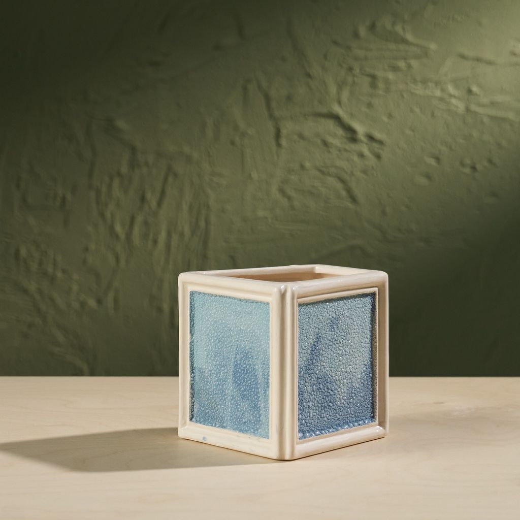 'Window' Series W2 by Eunsol Kim, Glazed Ceramic Sculpture in Beige and Blue, The Netherlands, 2025"