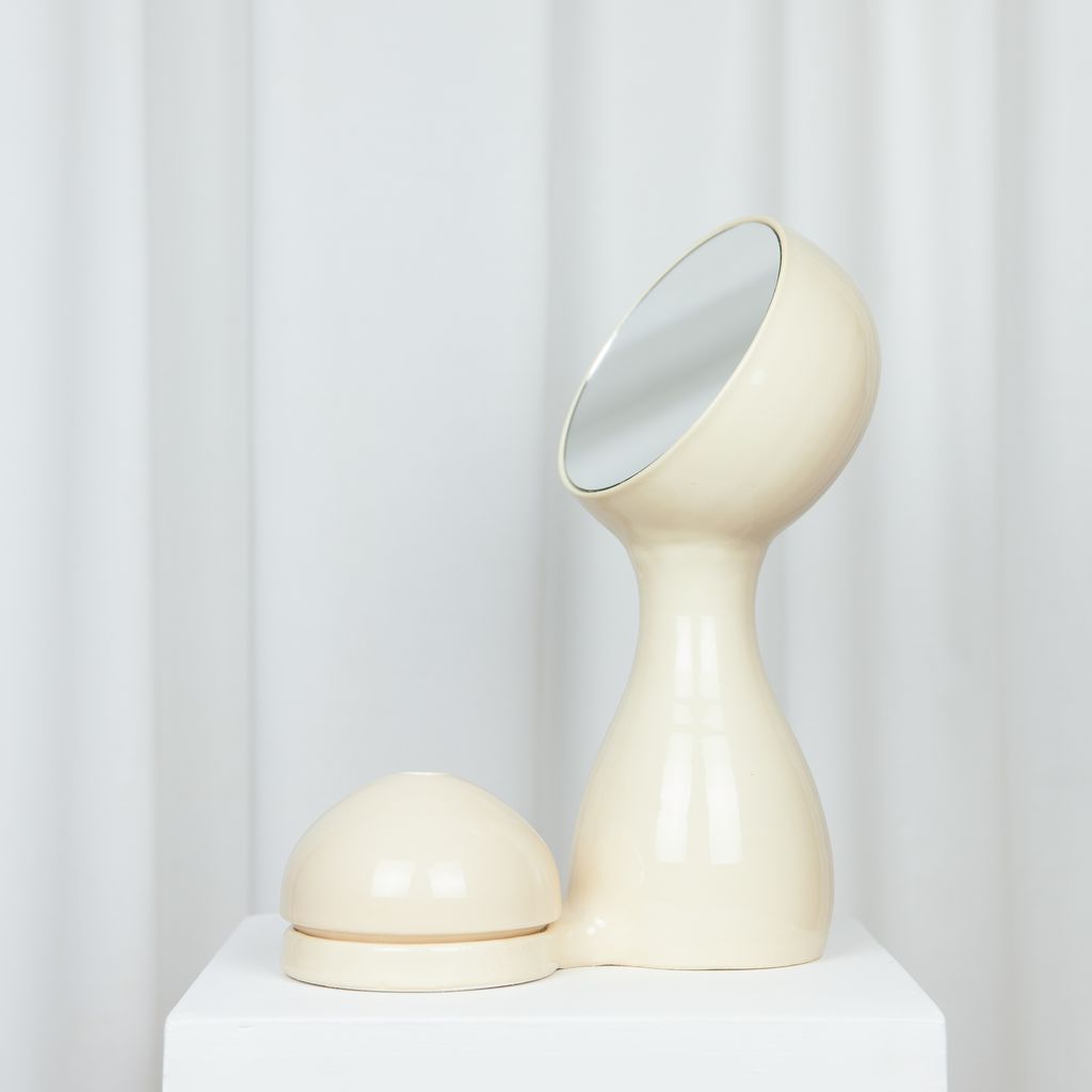 Mirror with detachable vase. Vase glazed in beige on the inside. This piece is designed and handcrafted in the south of France.