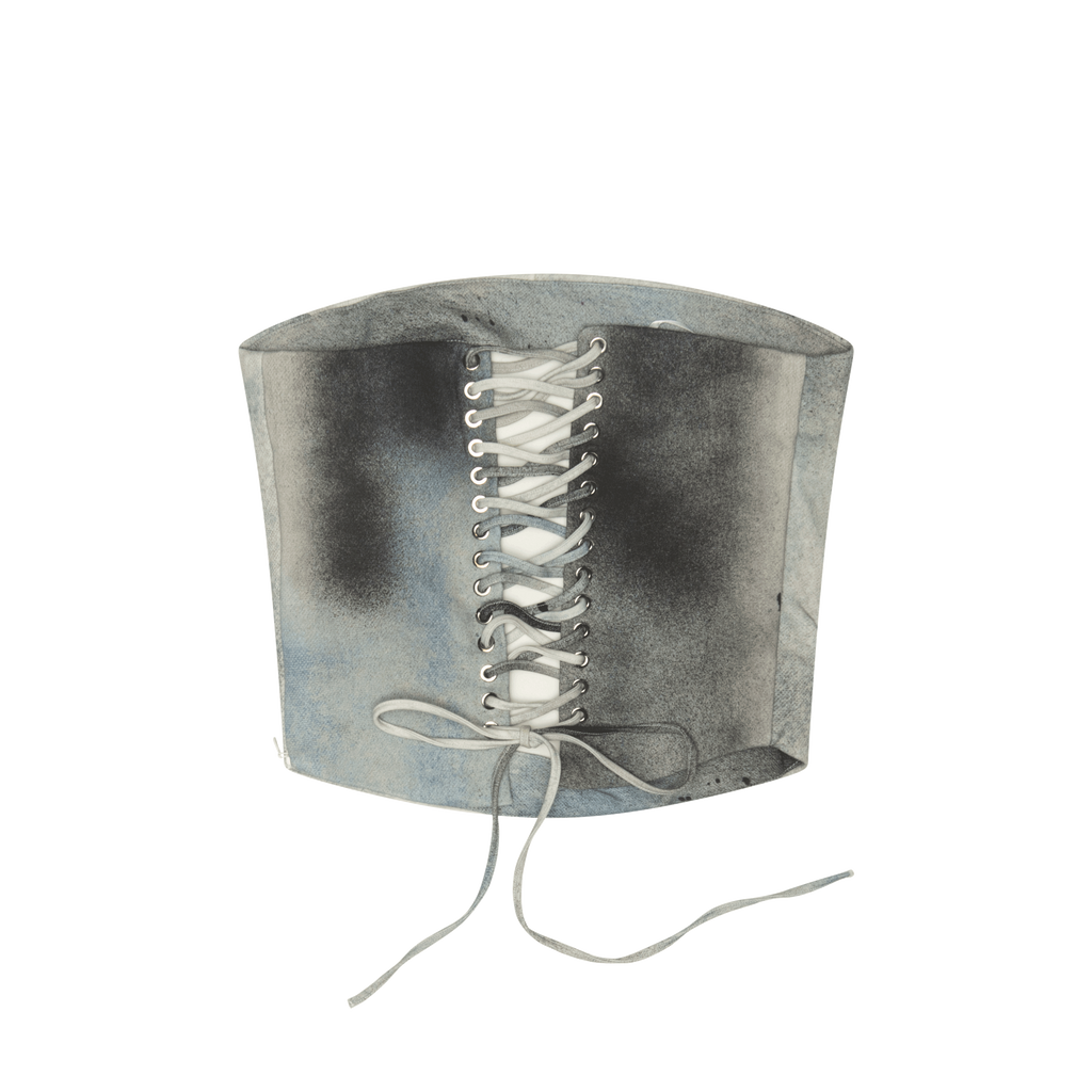With Jéan Jean Viola Set features skirt and corset set.Skirt has back zip closure with printed design. and corset has back lace up closure.