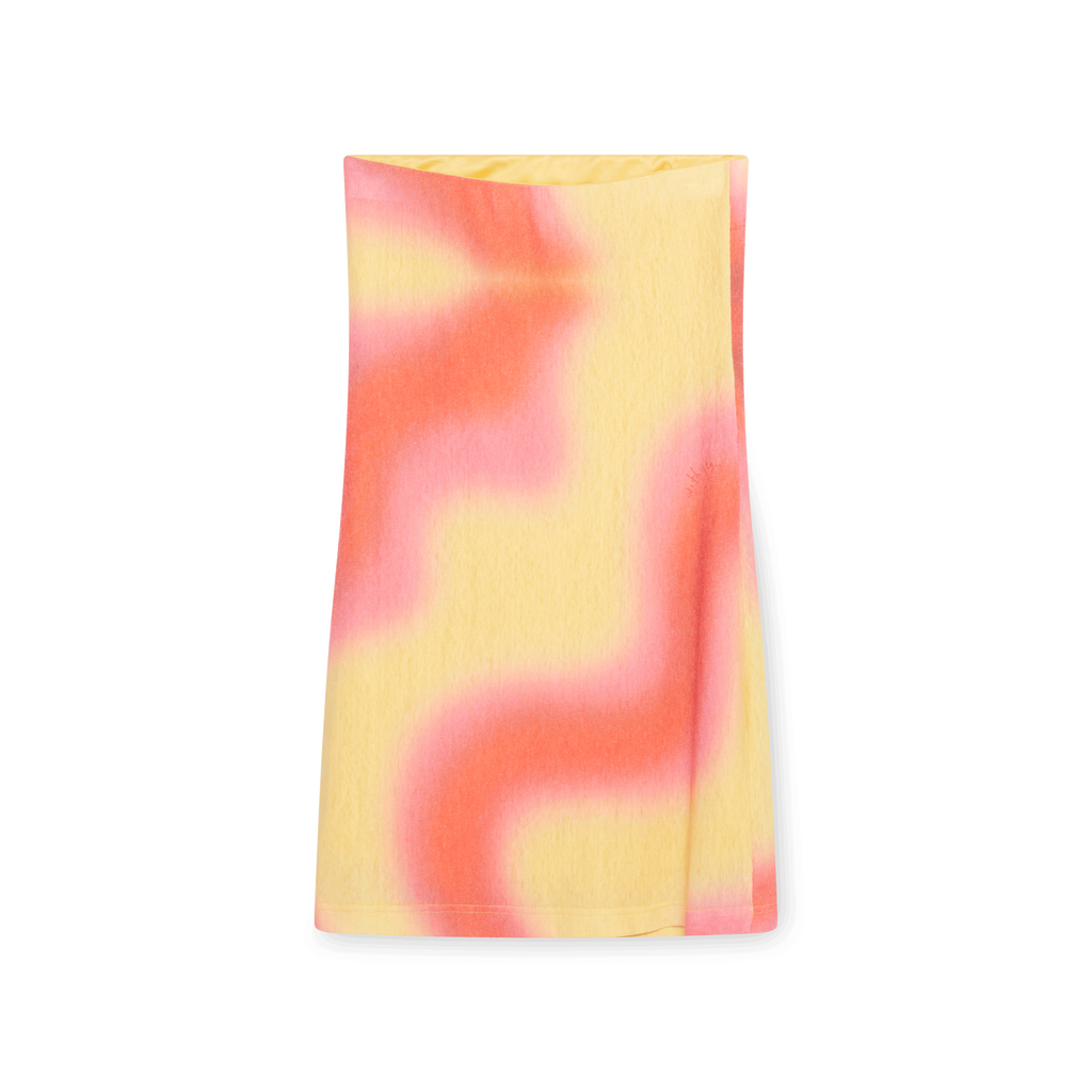 With Jean Frankie Dress in Ziggy features strapless style, mini length, light weight knitted fabric with a subtle stretch, and elasticated band on bust.