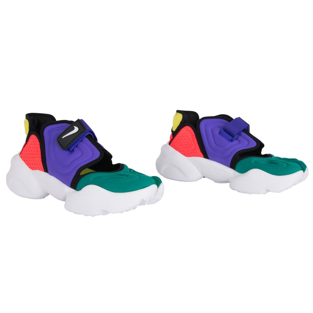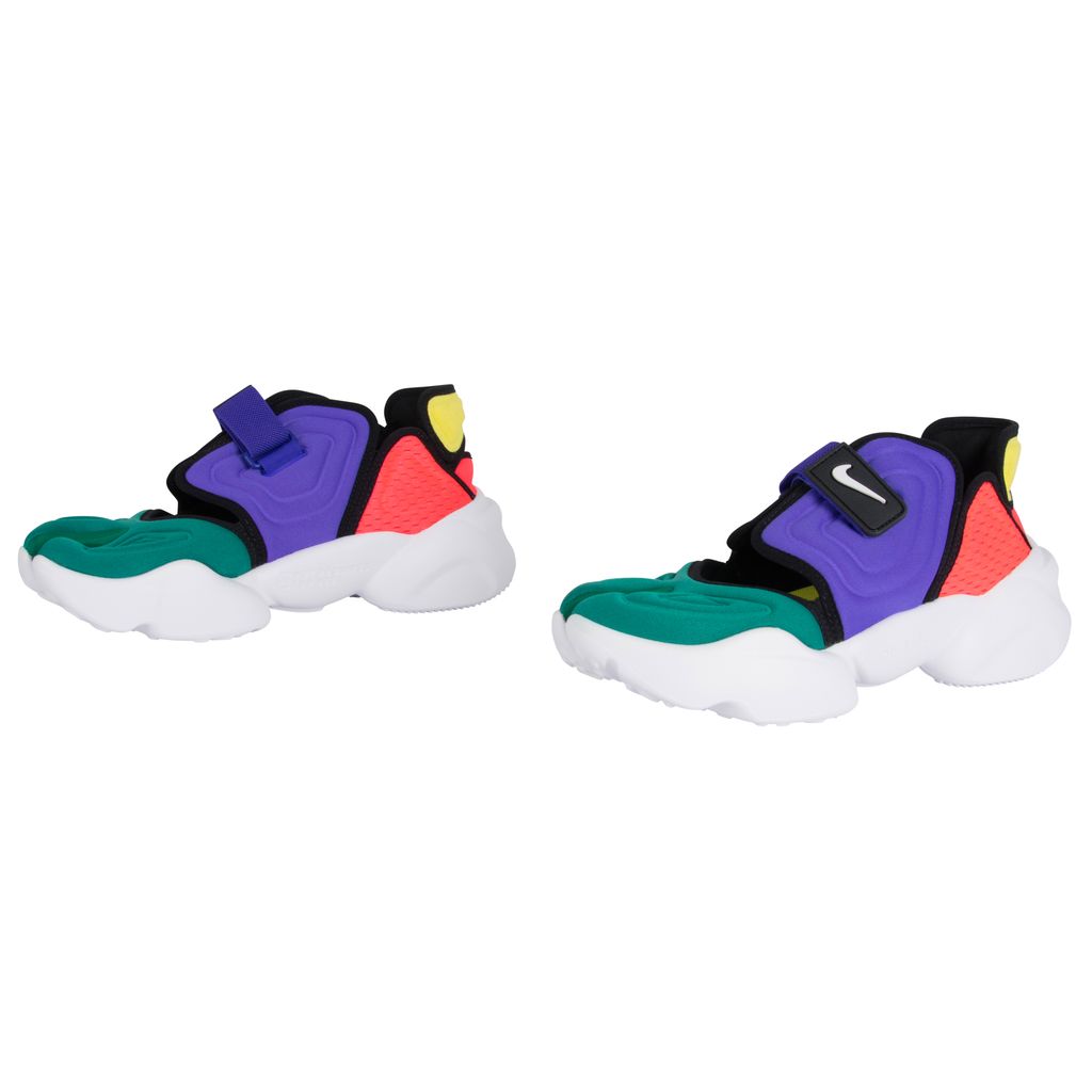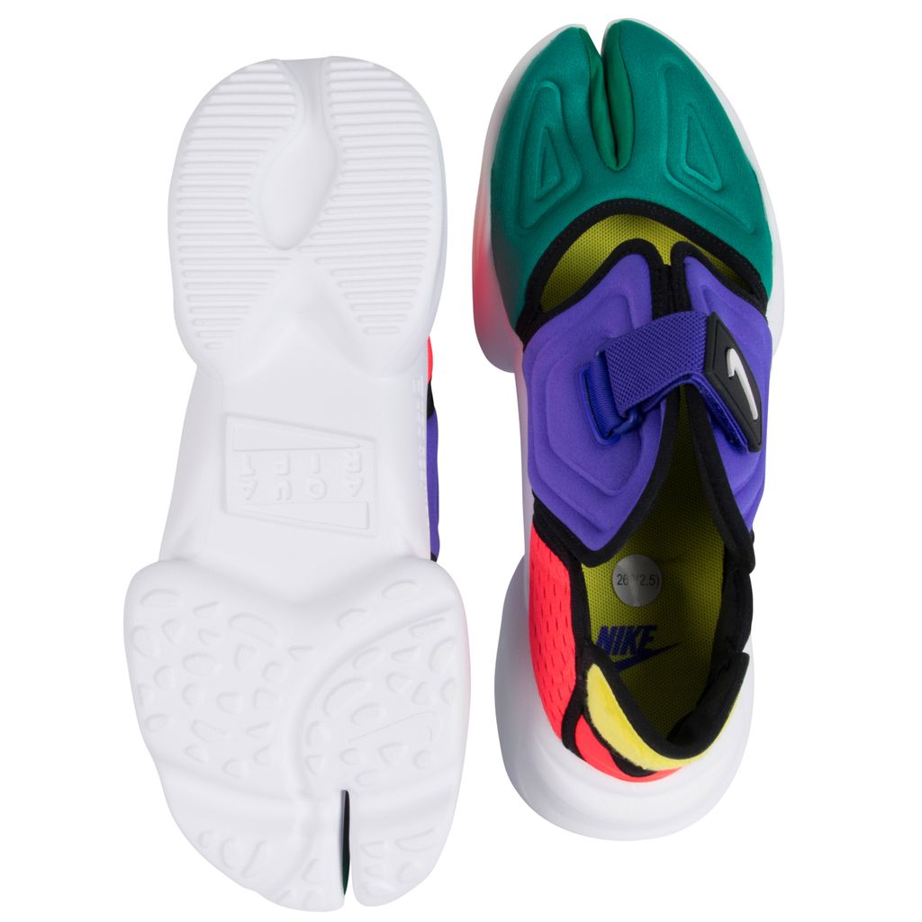 Blending features from 2 classic '90s styles, the Nike Aqua Rift takes retro beach style into the present with a futuristic silhouette and an exaggerated stance. Featuring the iconic split toe from Nike Aqua Gear, the shoe works with the natural motion of your foot. Padding on the upper keeps it comfortable around town. Extremely lightweight. Brand new, in original packaging.