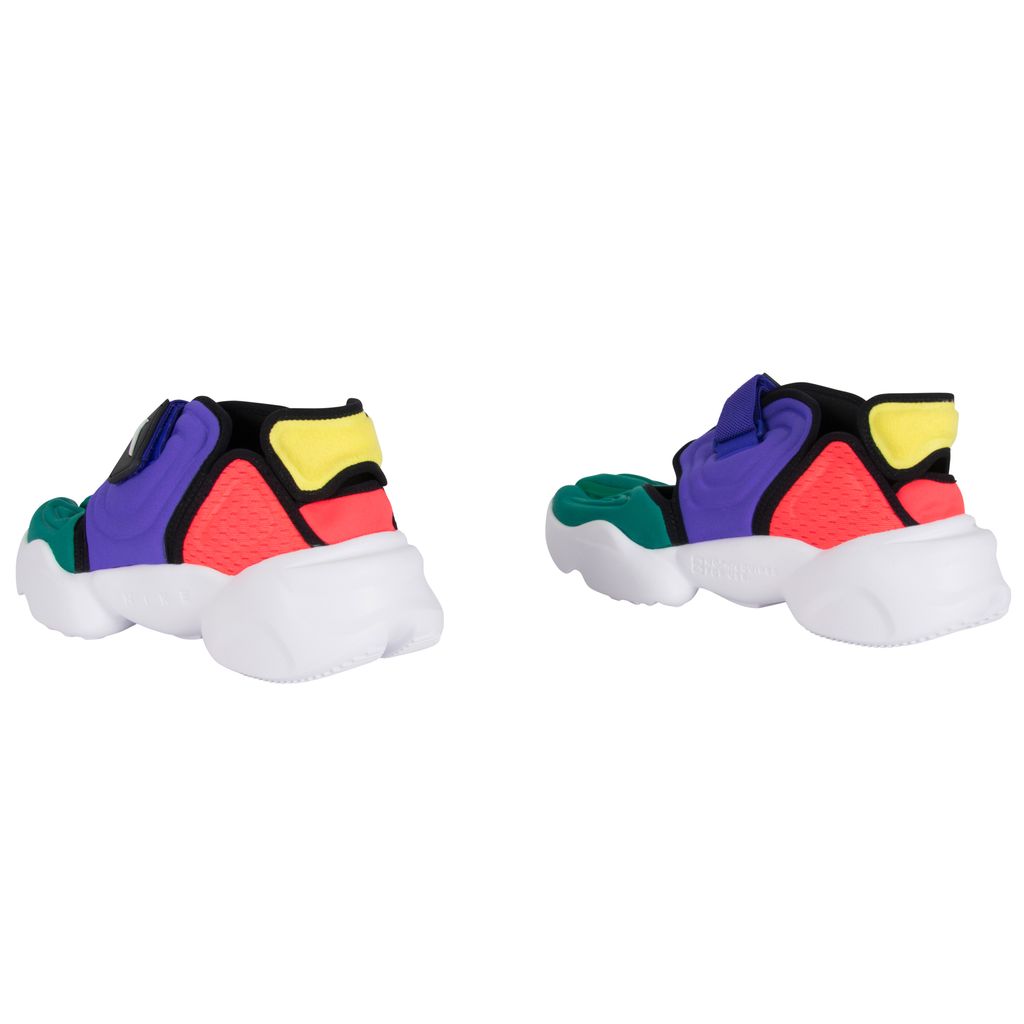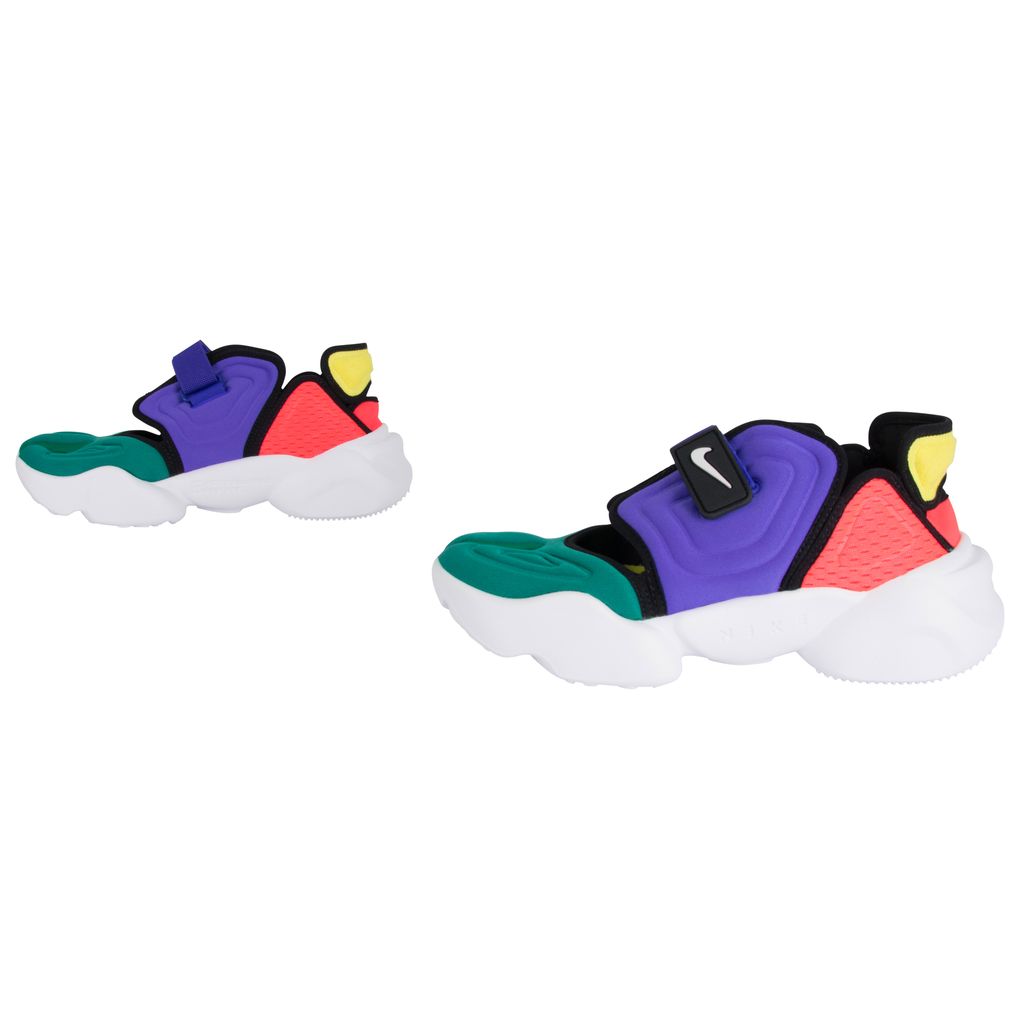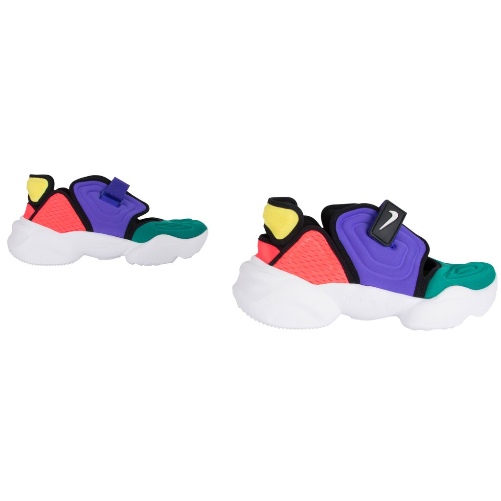 Blending features from 2 classic '90s styles, the Nike Aqua Rift takes retro beach style into the present with a futuristic silhouette and an exaggerated stance. Featuring the iconic split toe from Nike Aqua Gear, the shoe works with the natural motion of your foot. Padding on the upper keeps it comfortable around town. Extremely lightweight. Brand new, in original packaging.